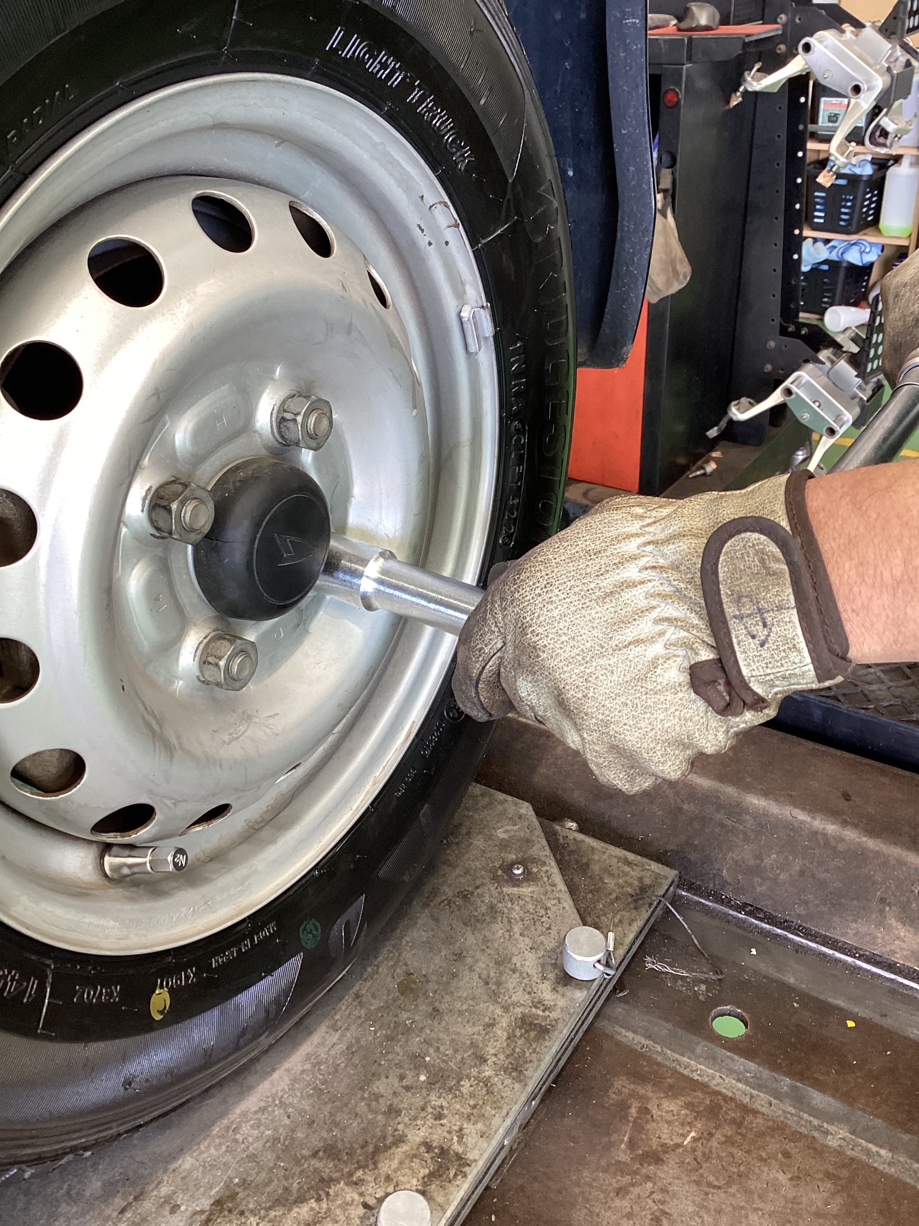ホイールの重さをより均等にするためにバランス調整を行います\(-o-)/