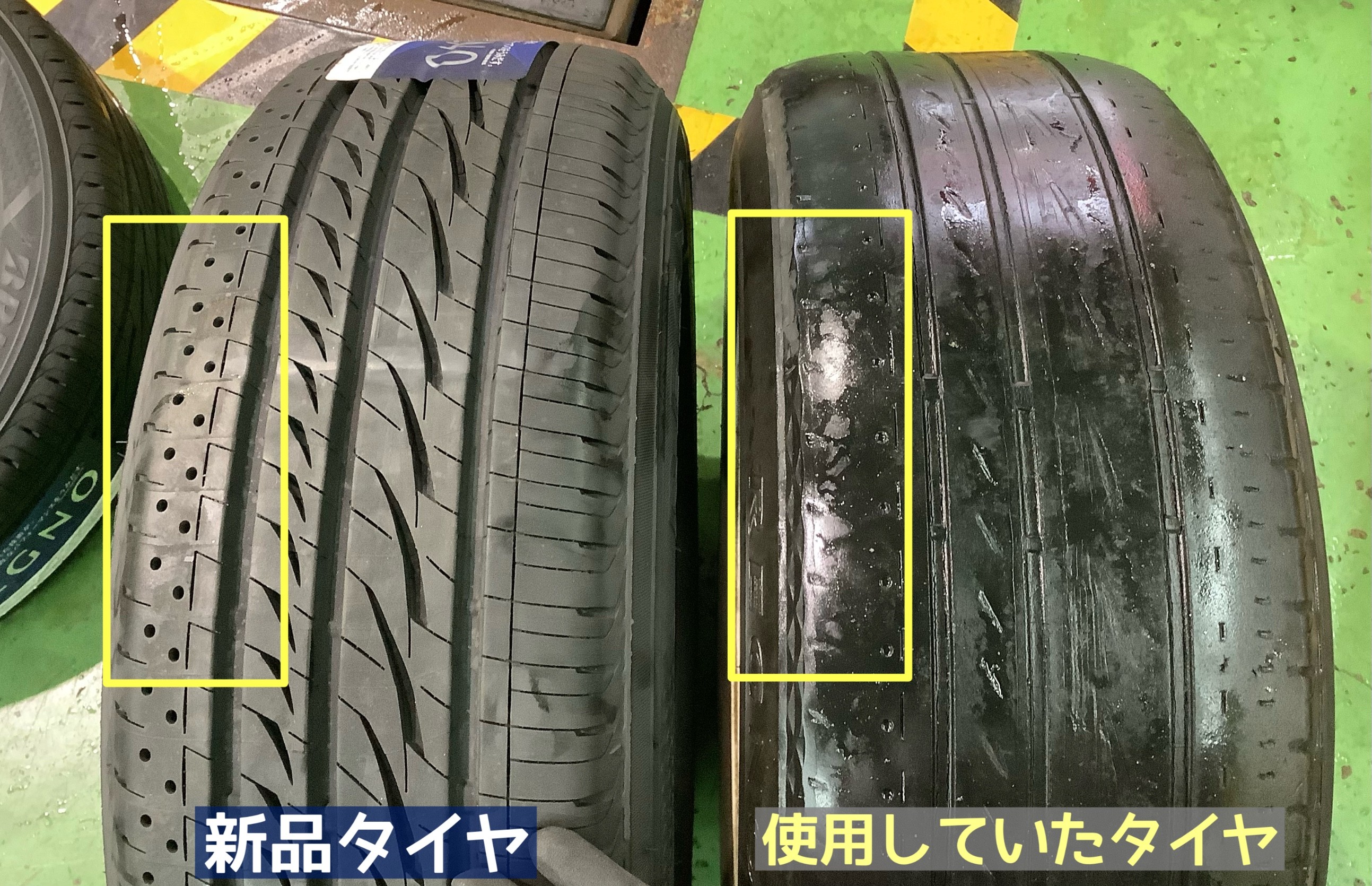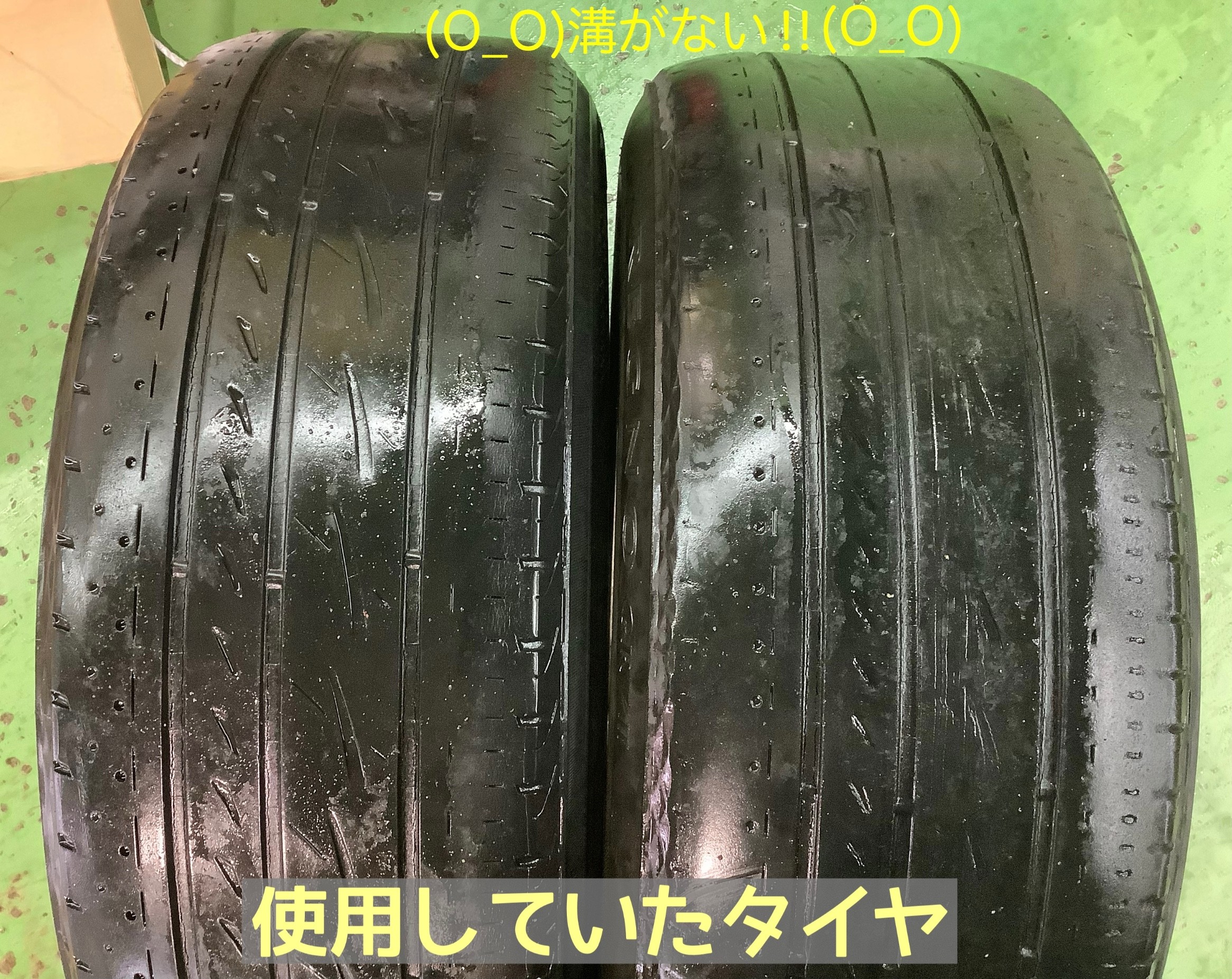 使用していたタイヤは、たくさんお使いいただいたようで、タイヤの模様がすっかり消えてしまうほどに溝がなくなっておりました。