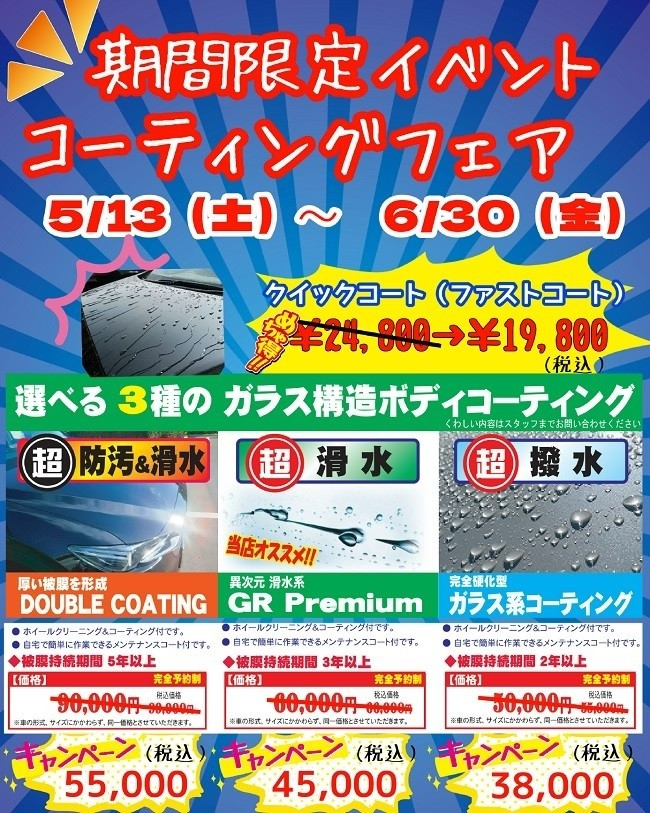 この度、今の時期だからこそ、効果「大」のカーコーティングフェアを開催します(^0^