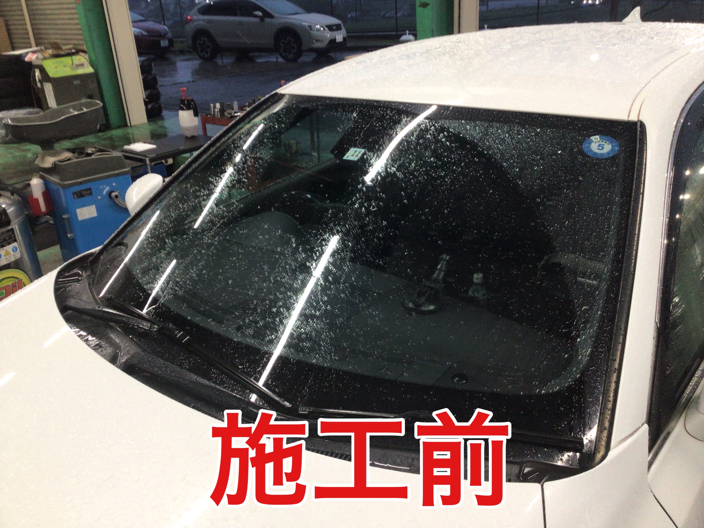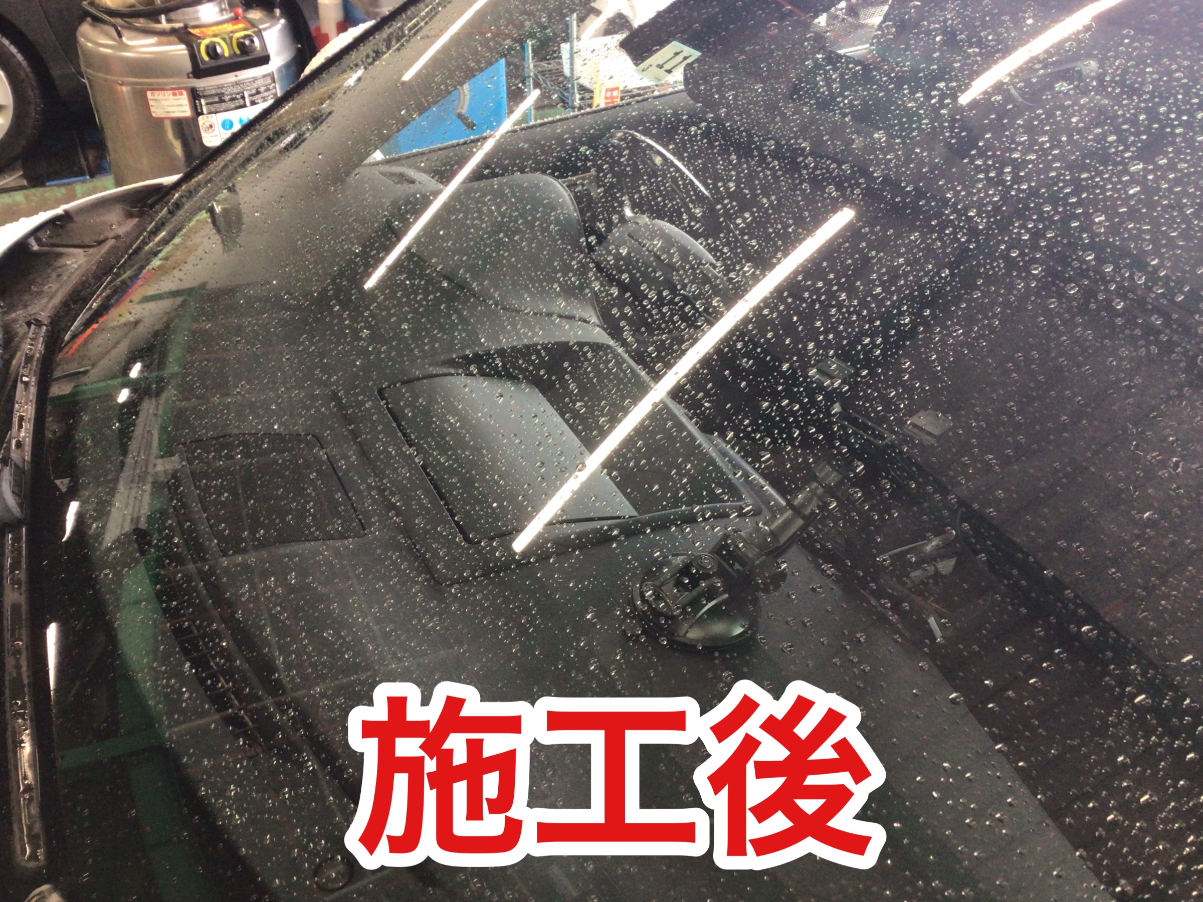 フロントガラスを「油膜取り」できれいにした後、「コーティング剤」を施工します。