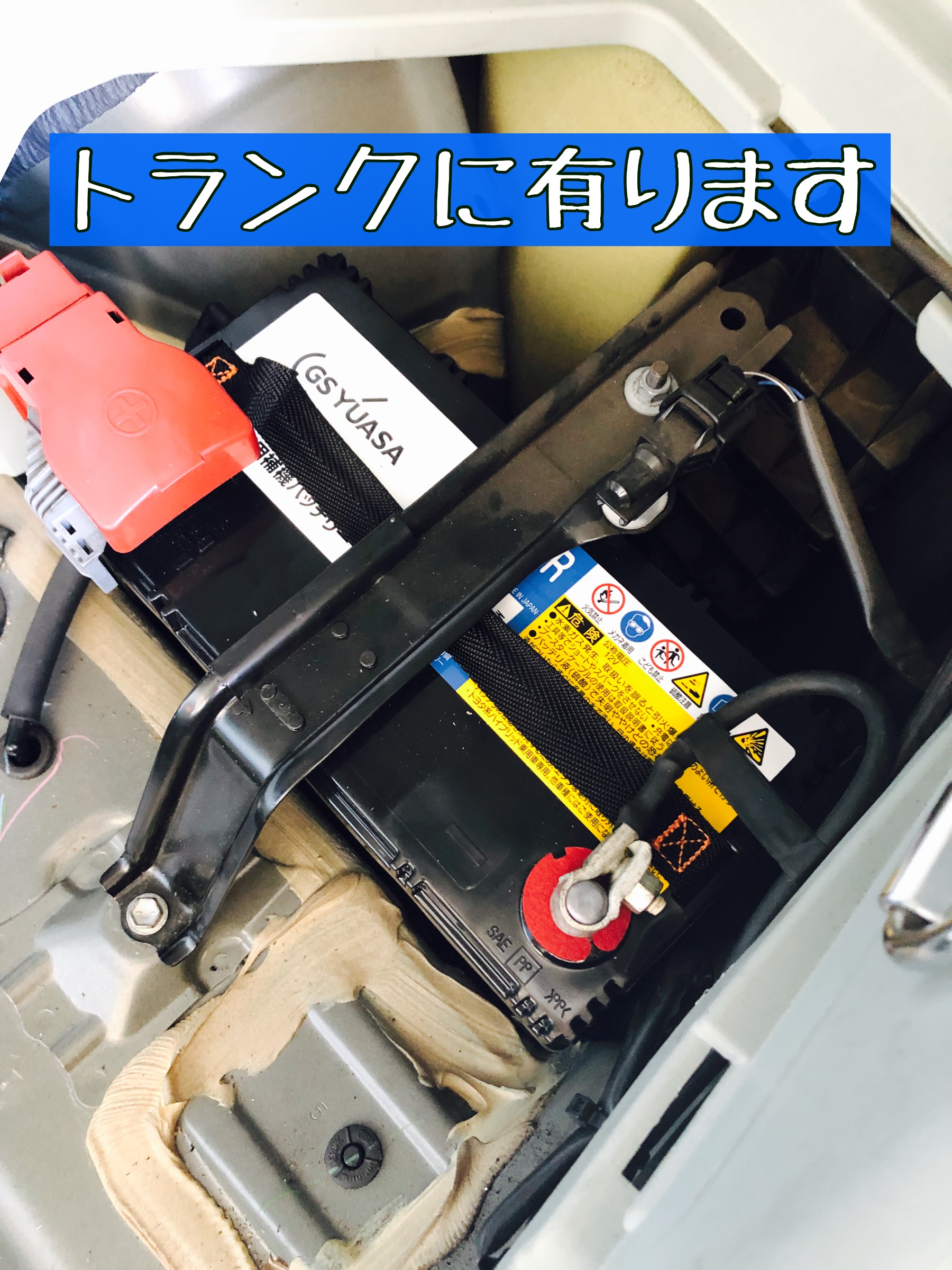 プリウスαのバッテリーは、トランクにございます。