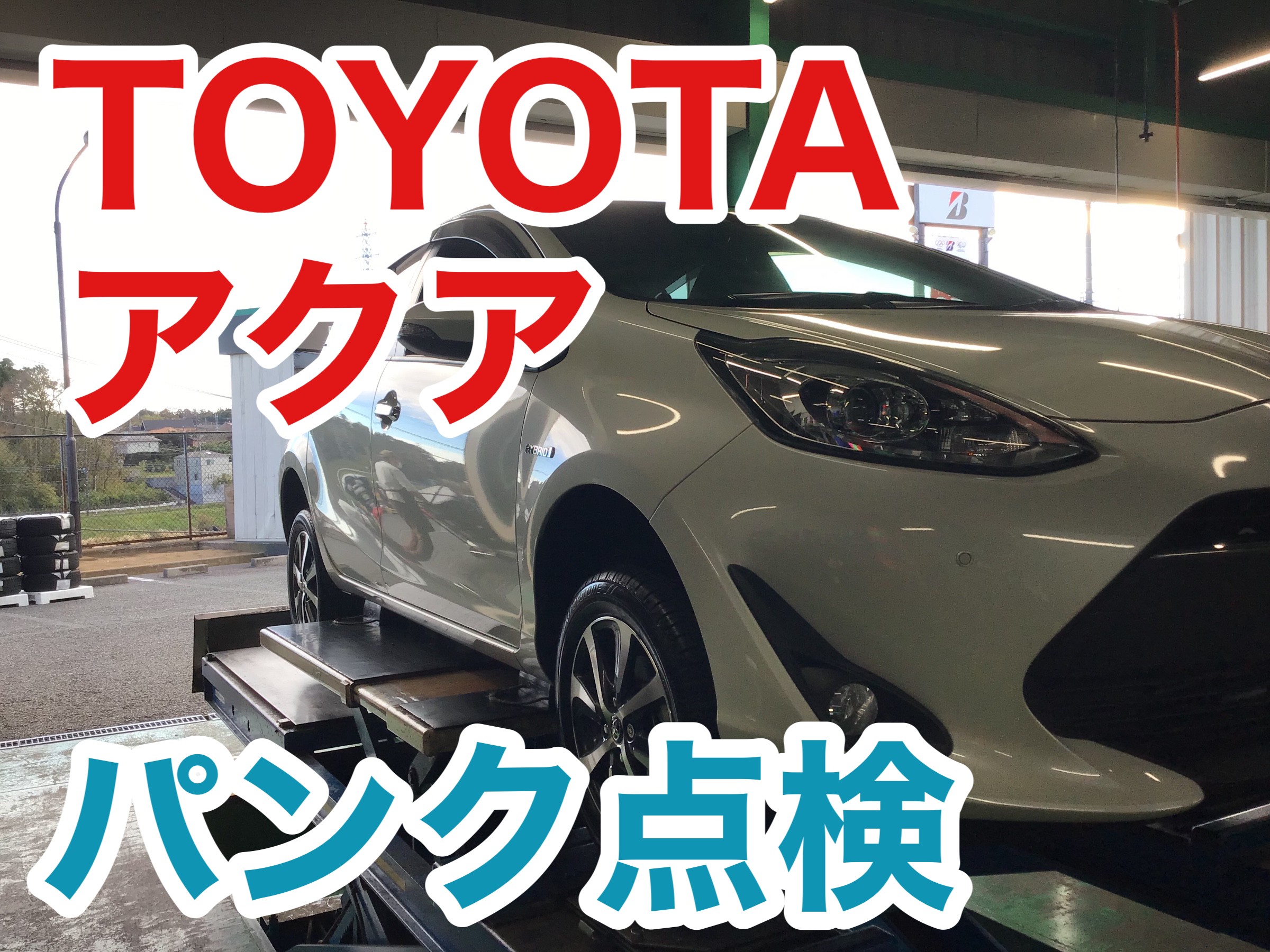 トヨタのアクア、パンク点検にご来店頂きました。