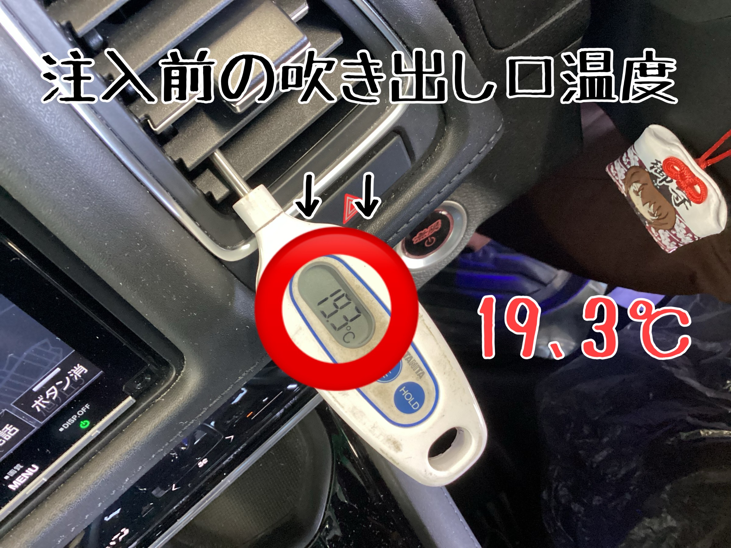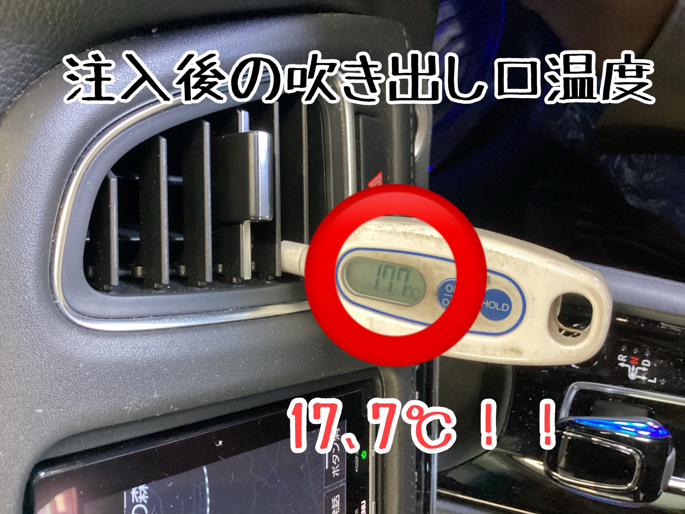 まずは、注入前のエアコン吹き出し口の最低温度を
