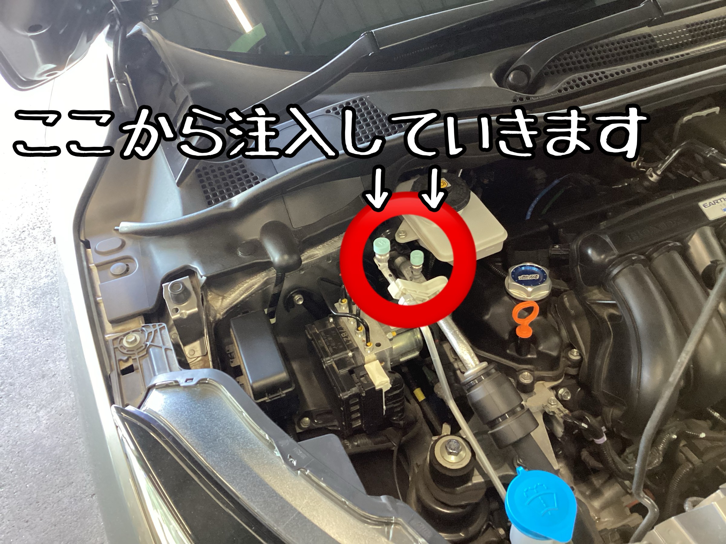 専用のホースをつないで、添加剤をいざ注入!!