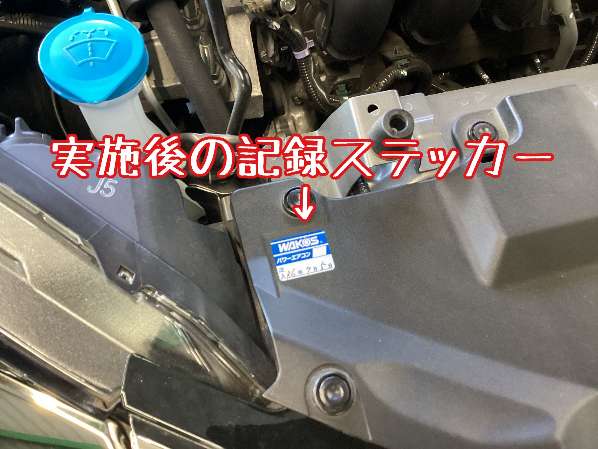 作業実施後は付属の注入済みステッカーを貼り付けて