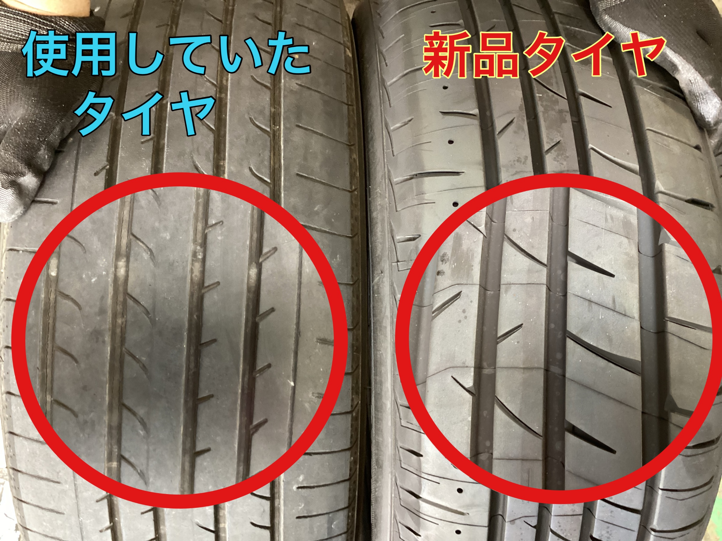 タイヤの溝が半分程、減りますと止まるまでの距離が長くなってしまいます(><)