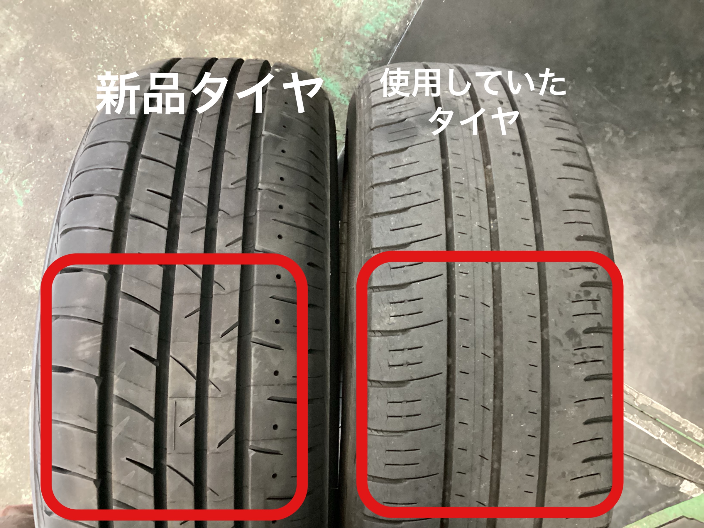 新品タイヤと見比べると、溝も少なくヒビ割れも発生していました(´°̥̥̥̥̥̥̥̥ω°̥̥̥̥̥̥̥̥`)
