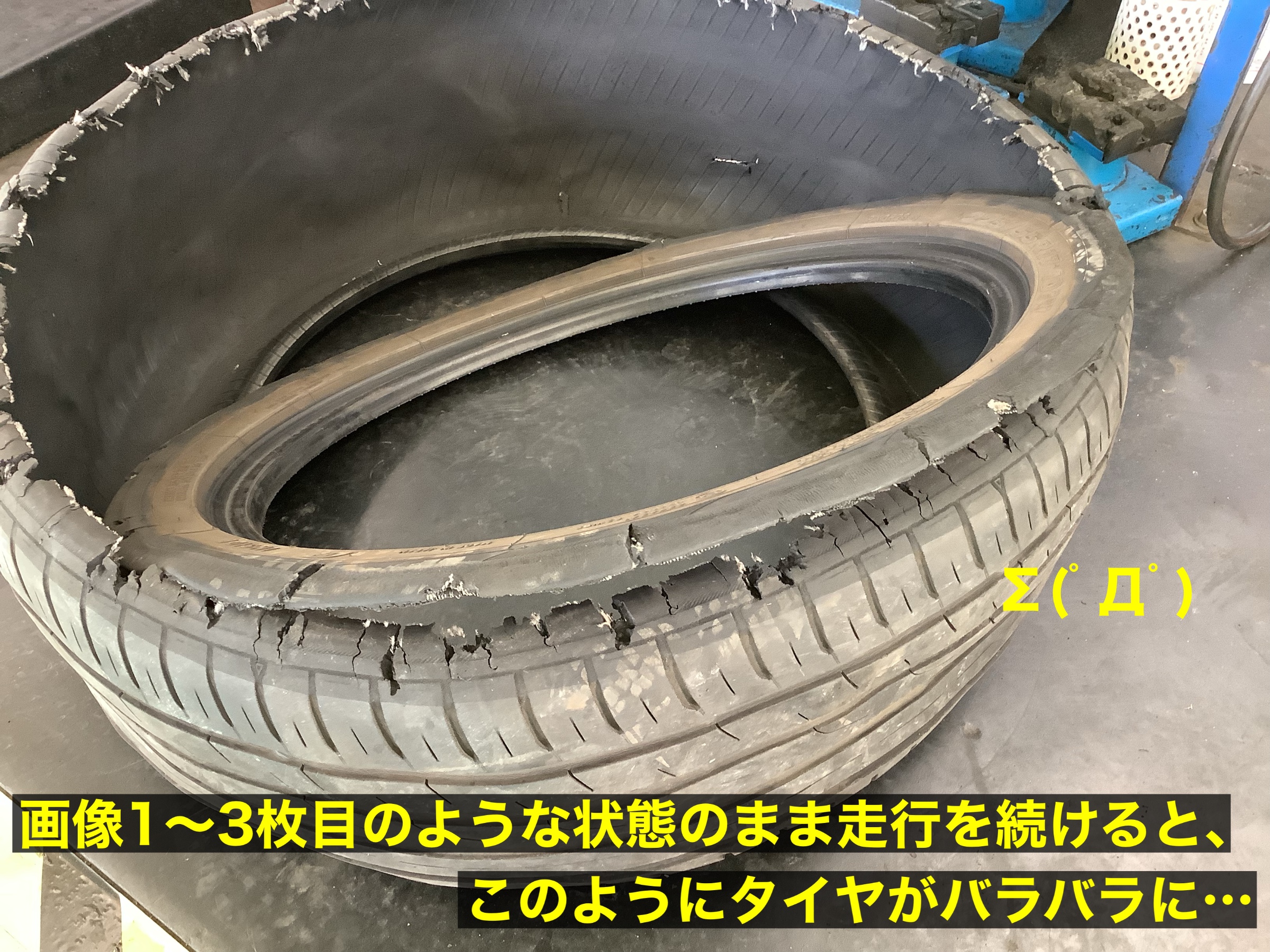 タイヤが分解されてバラバラになり、ホイールまで損傷してしまうことも !!