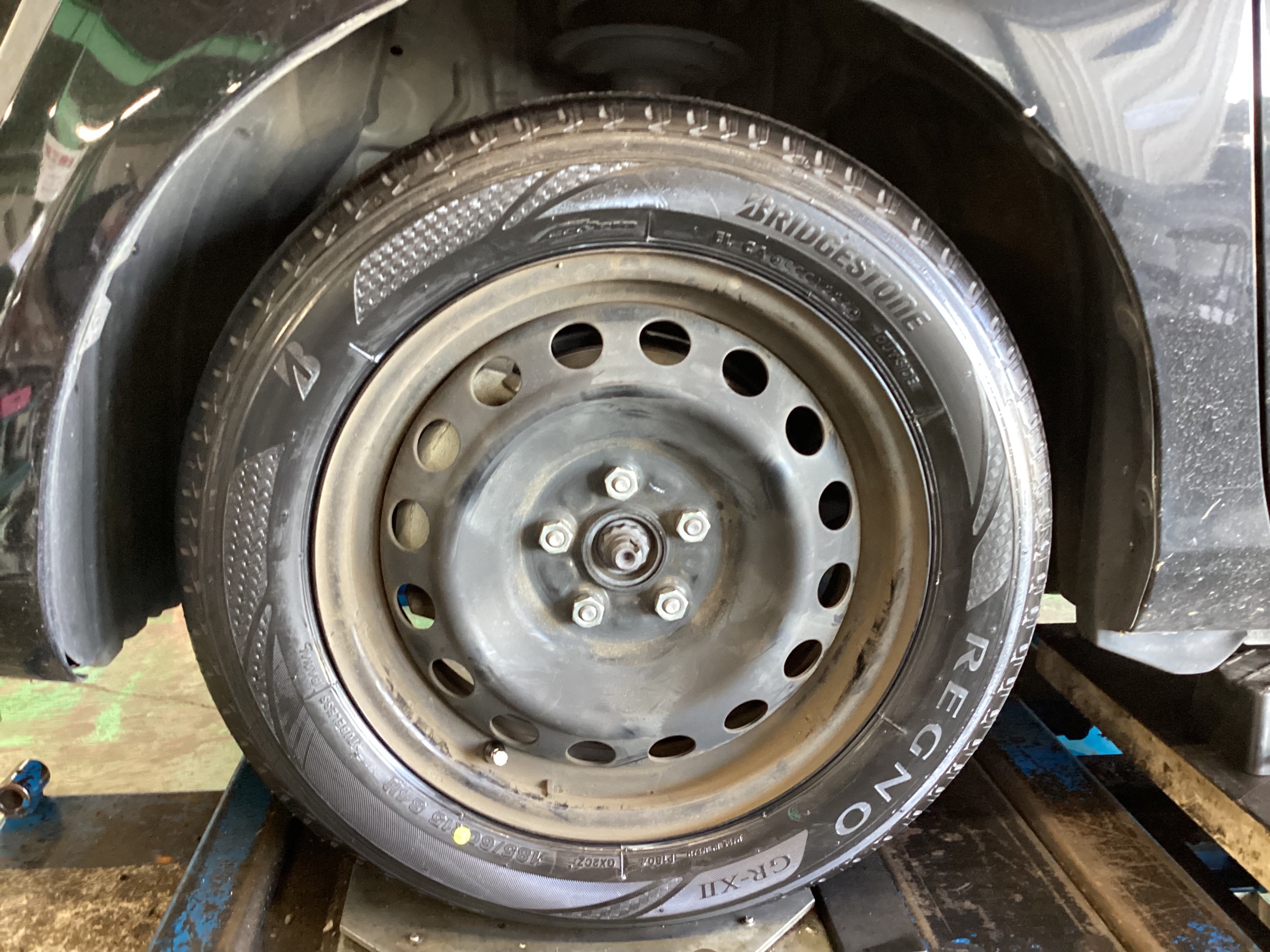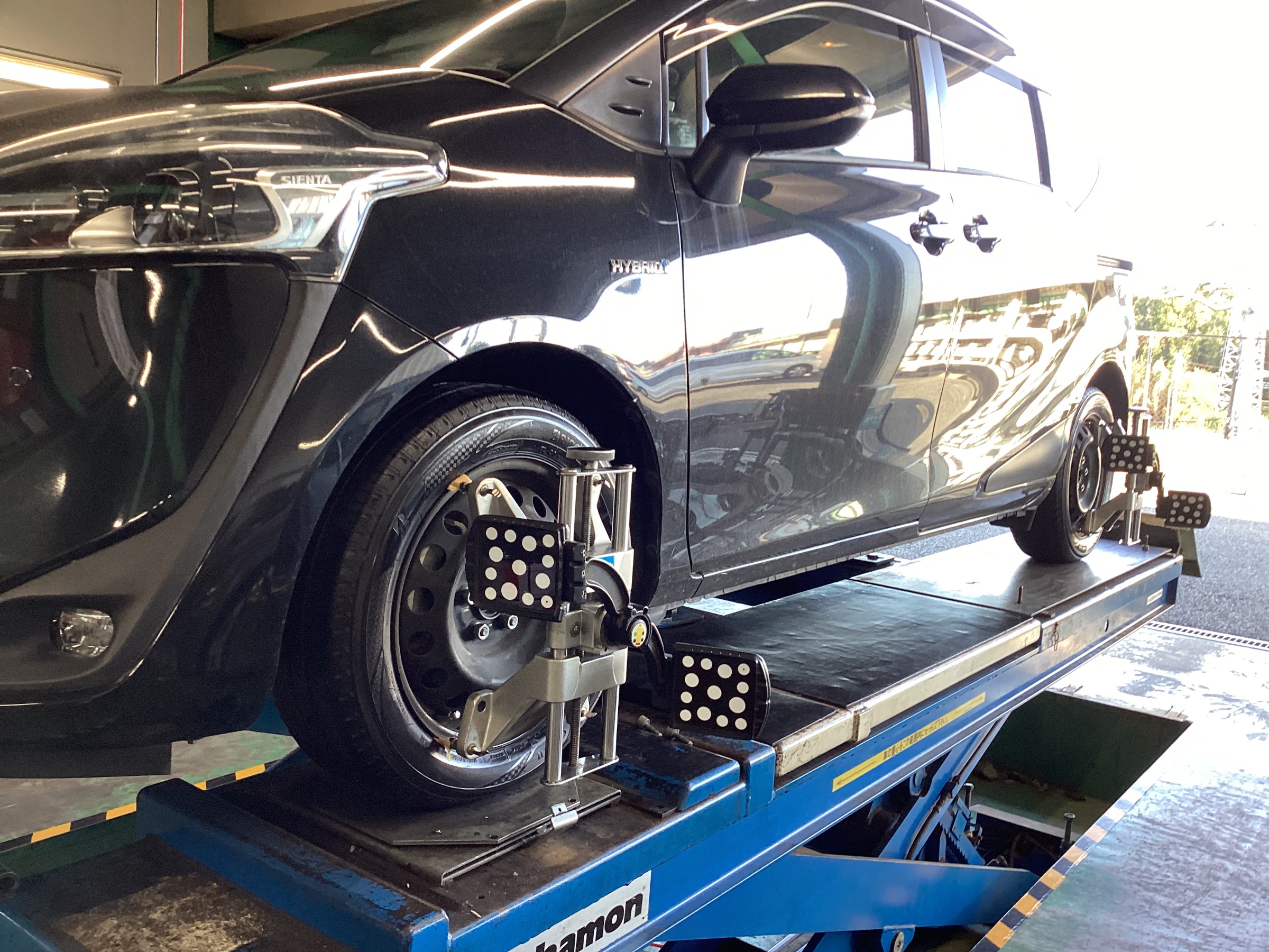 タイヤ取り付け後にアライメント調整を行い、タイヤの向きを新車と同じ数値に調整します(*´∇`*)