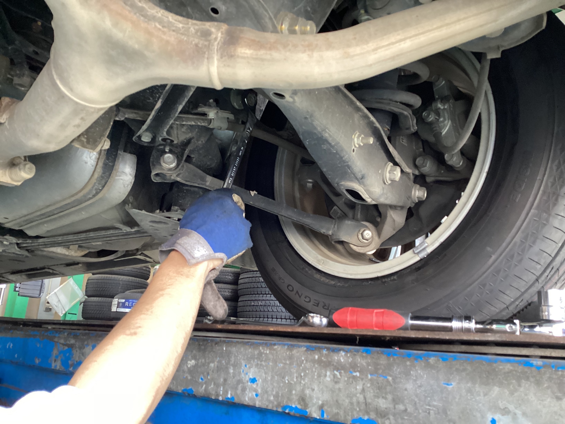 タイヤを交換しましたが、偏摩耗などせず長く使っていただけるよう、そして新しいタイヤの性能をしっかりと引き出すことができるように、アライメント測定・調整も行いました。タイヤ交換は、アライメント作業を行ういいタイミングですね。
