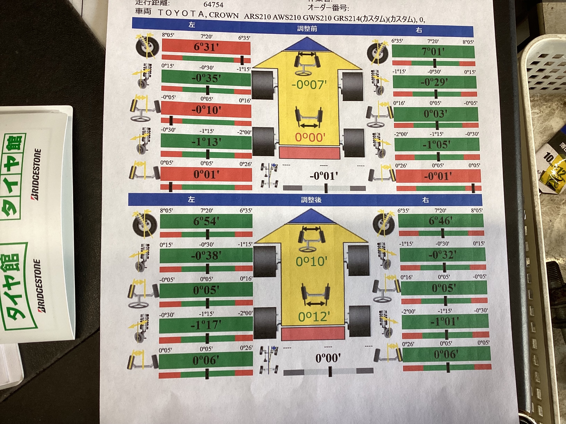 【アライメント測定・調整ならタイヤ館四街道におまかせ!!】 トヨタ クラウンのアライメント測定・調整を行いました。