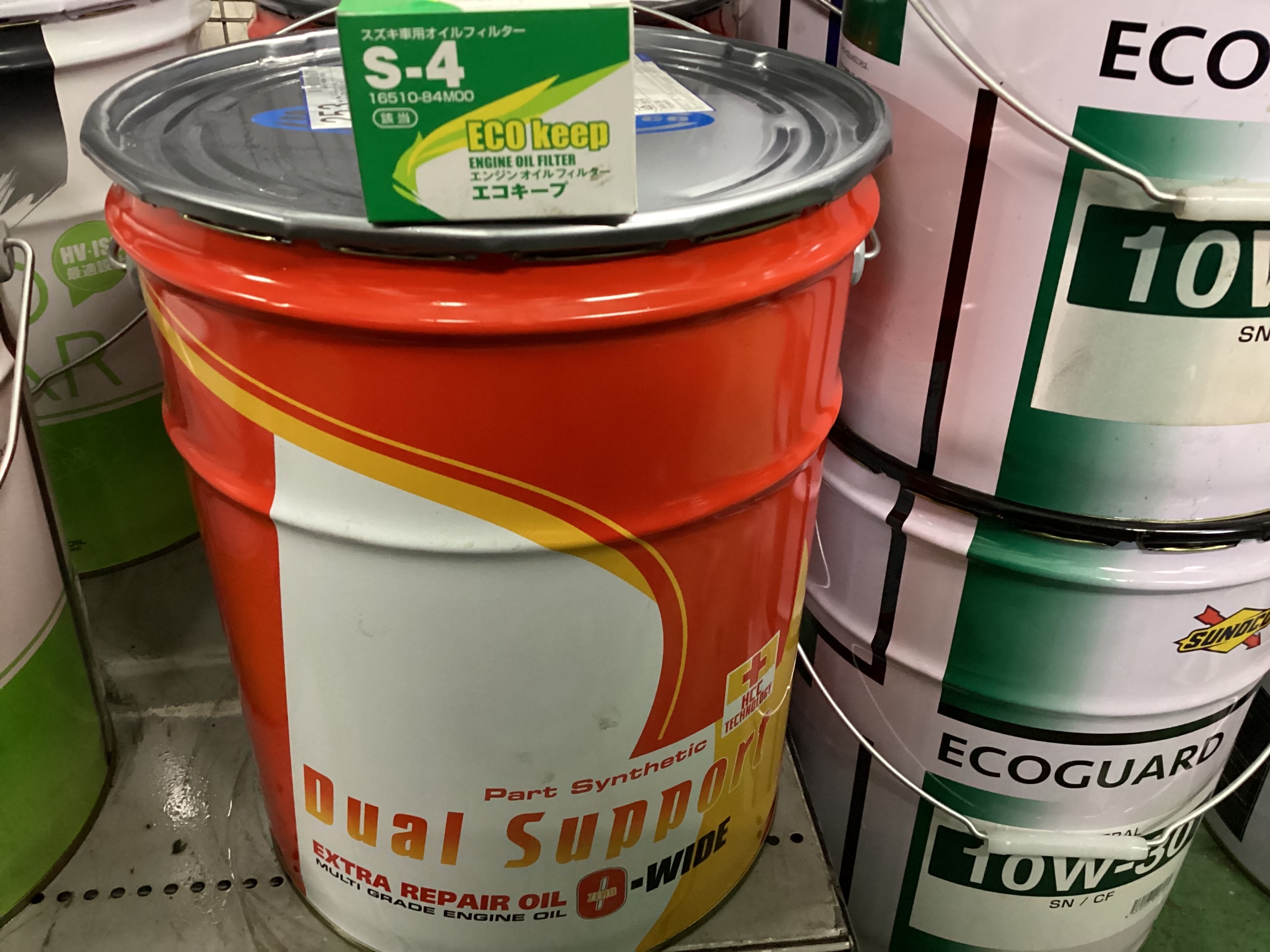 今回使用するオイルはデュアルサポートとオイルエレメントはECO keep S-4を使用します。