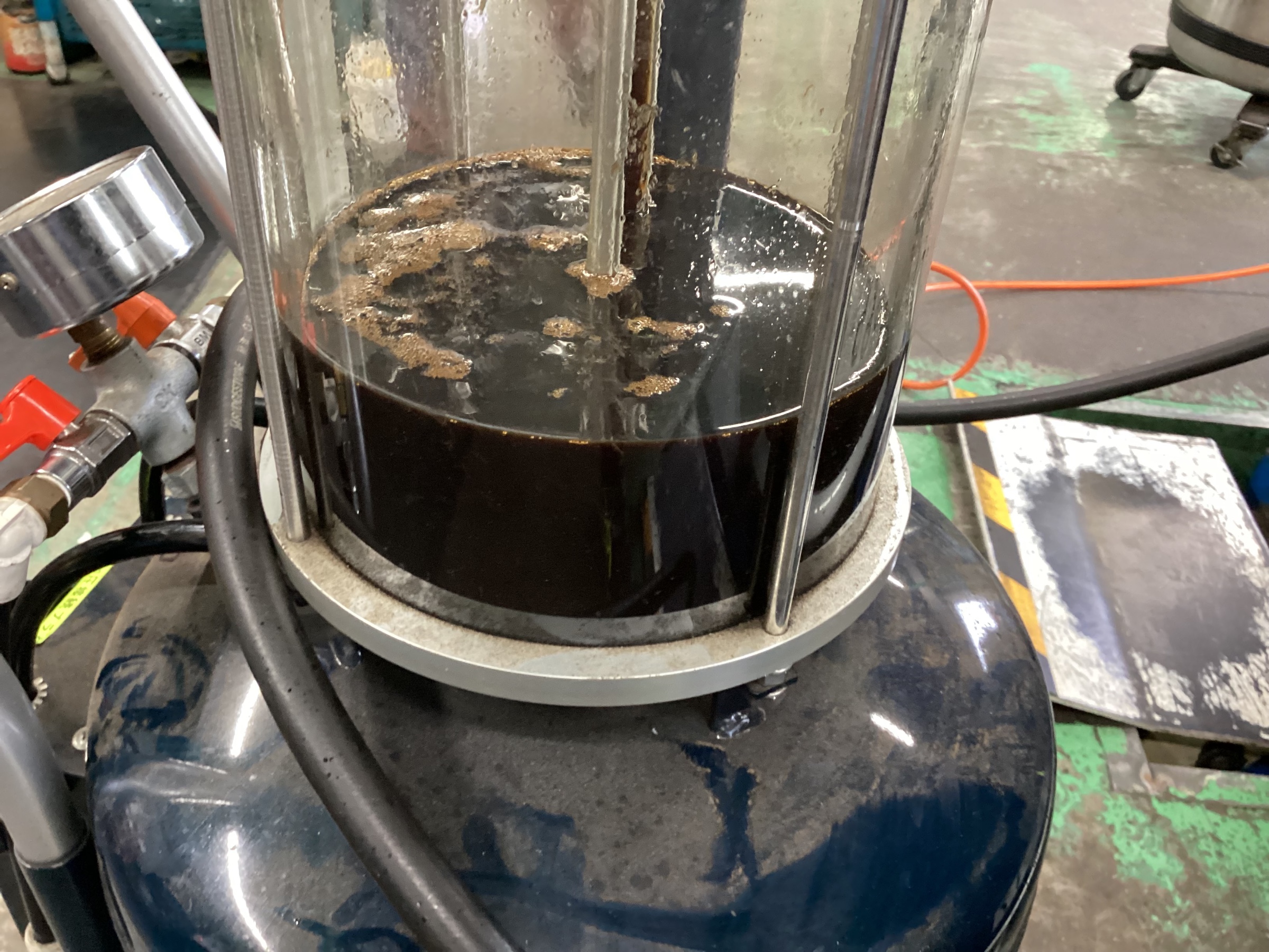 古いオイルを上側から抜き取ります(`・ω・´)