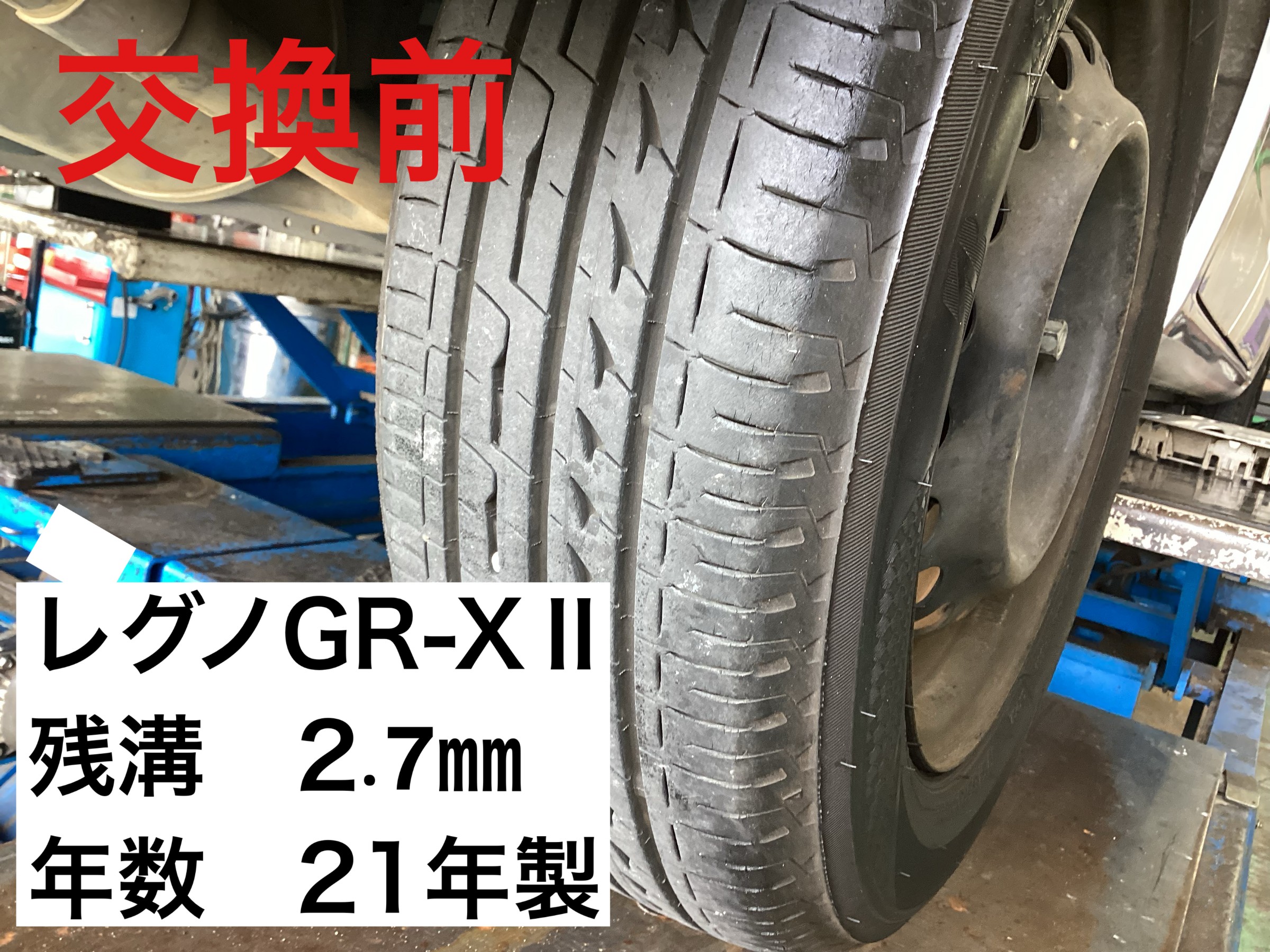 交換前状況:21年製 レグノGR-XⅡ 残溝2.7㎜