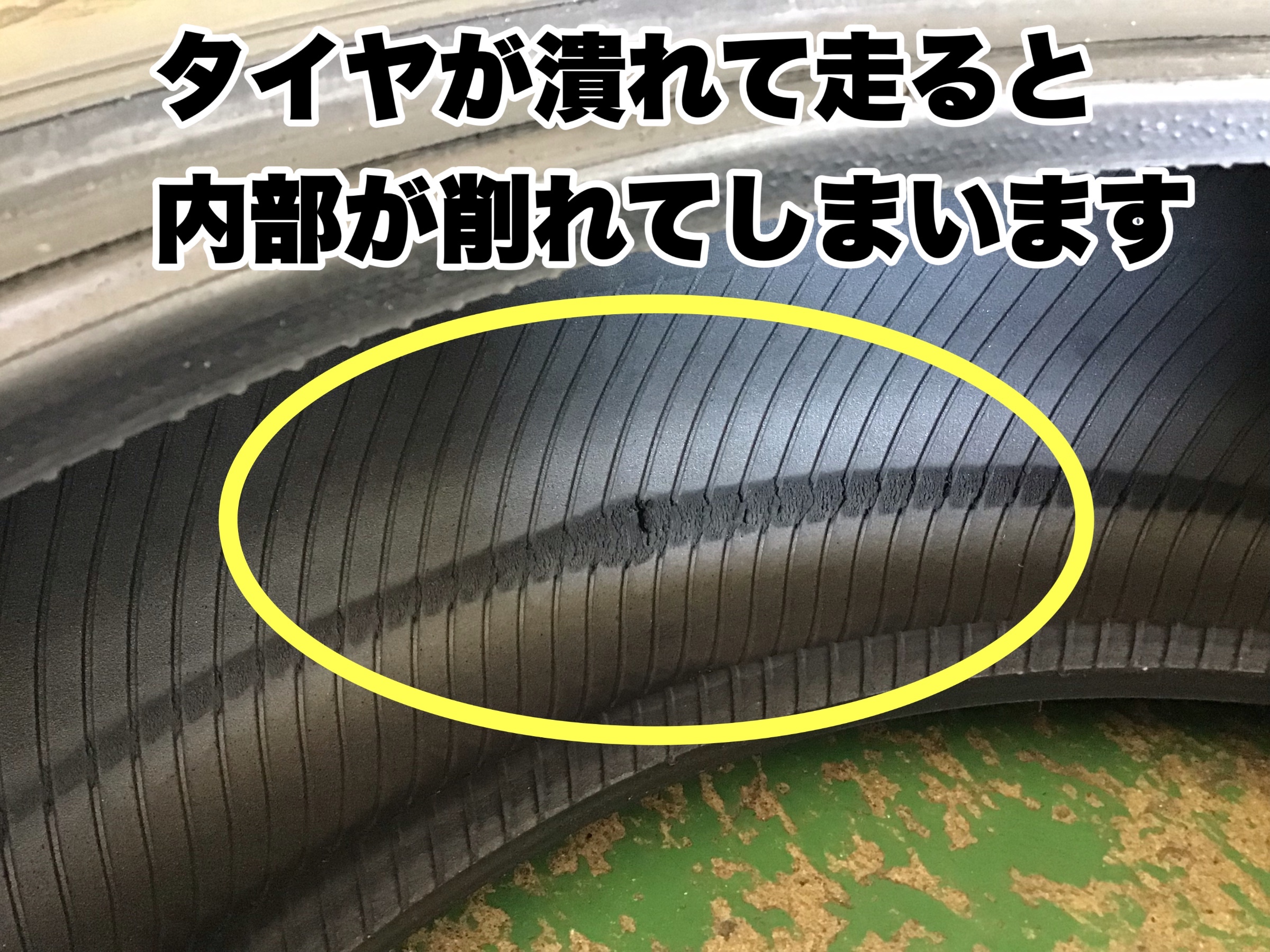 タイヤ内部のワイヤーやゴム層が傷んでしまっている