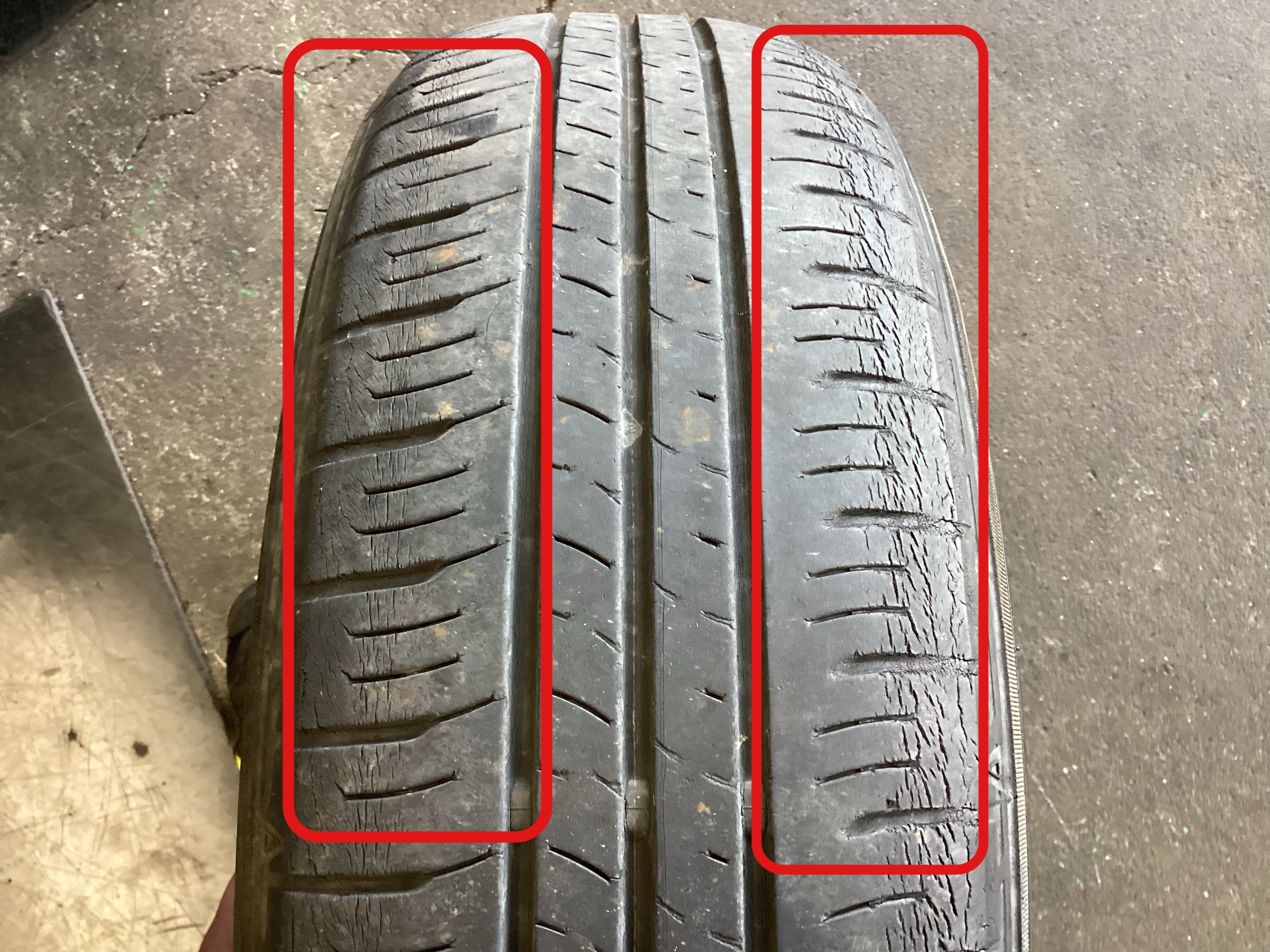 そのまま放置していくと、タイヤの偏摩耗につながってしまい新品んタイヤが偏った形で減ってしまいタイヤ交換サイクルが早くなってしまう恐れがあります。