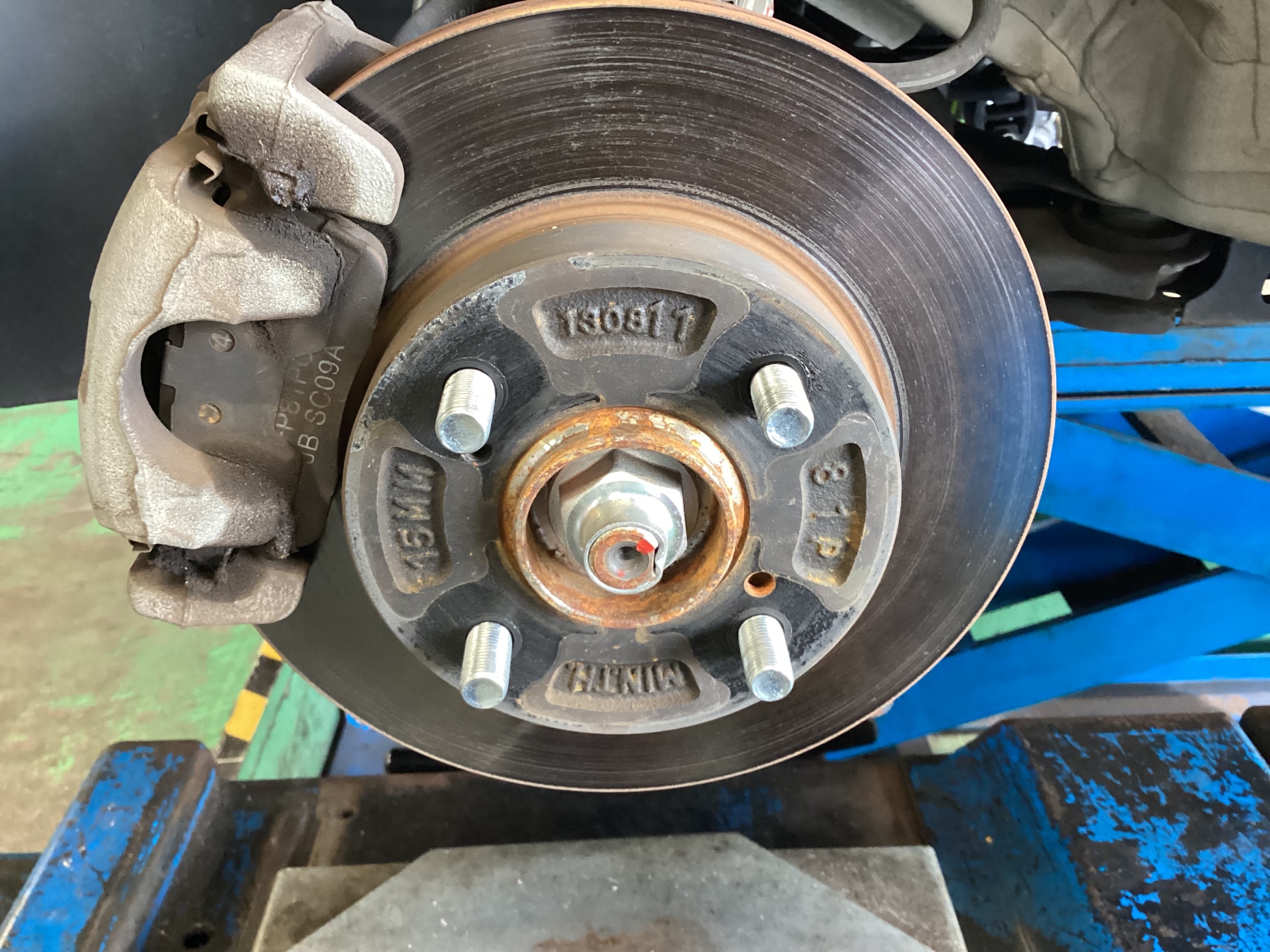 1枚目のように錆びている車がほとんどです。そのままタイヤを付けてしまうとブレやガタの原因にもなります。2枚目のように錆を落とし、防錆剤を塗布する事でホイールとハブをより密着しますᕦ(ò_óˇ)ᕤ