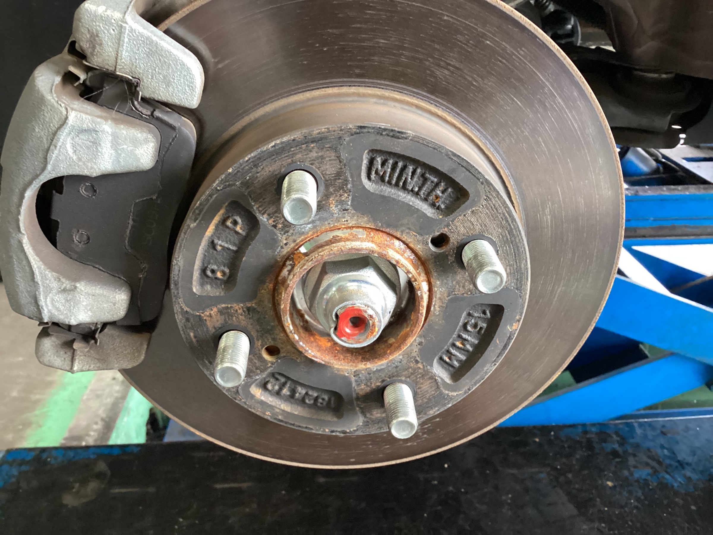 雨の影響を受けやすく錆が発生しやすいです。錆をそのままでホイールを付けてしまうと、ブレやガタの原因にもつながります。