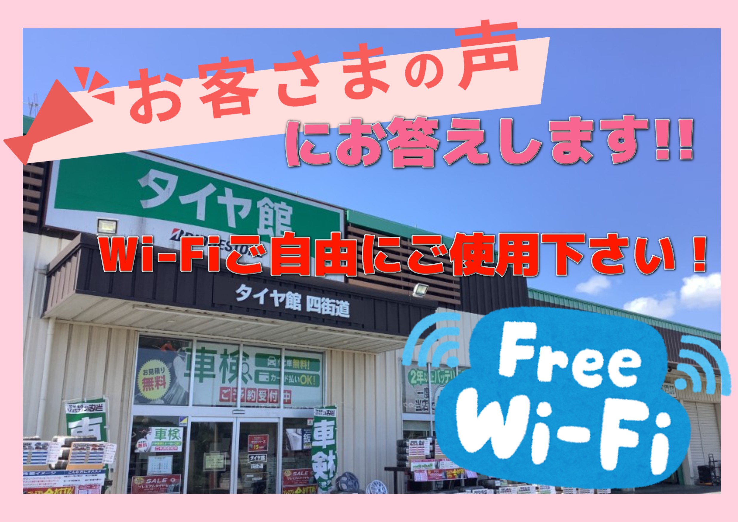 タイヤ館四街道店では無料Wi-Fiをご準備しております。
