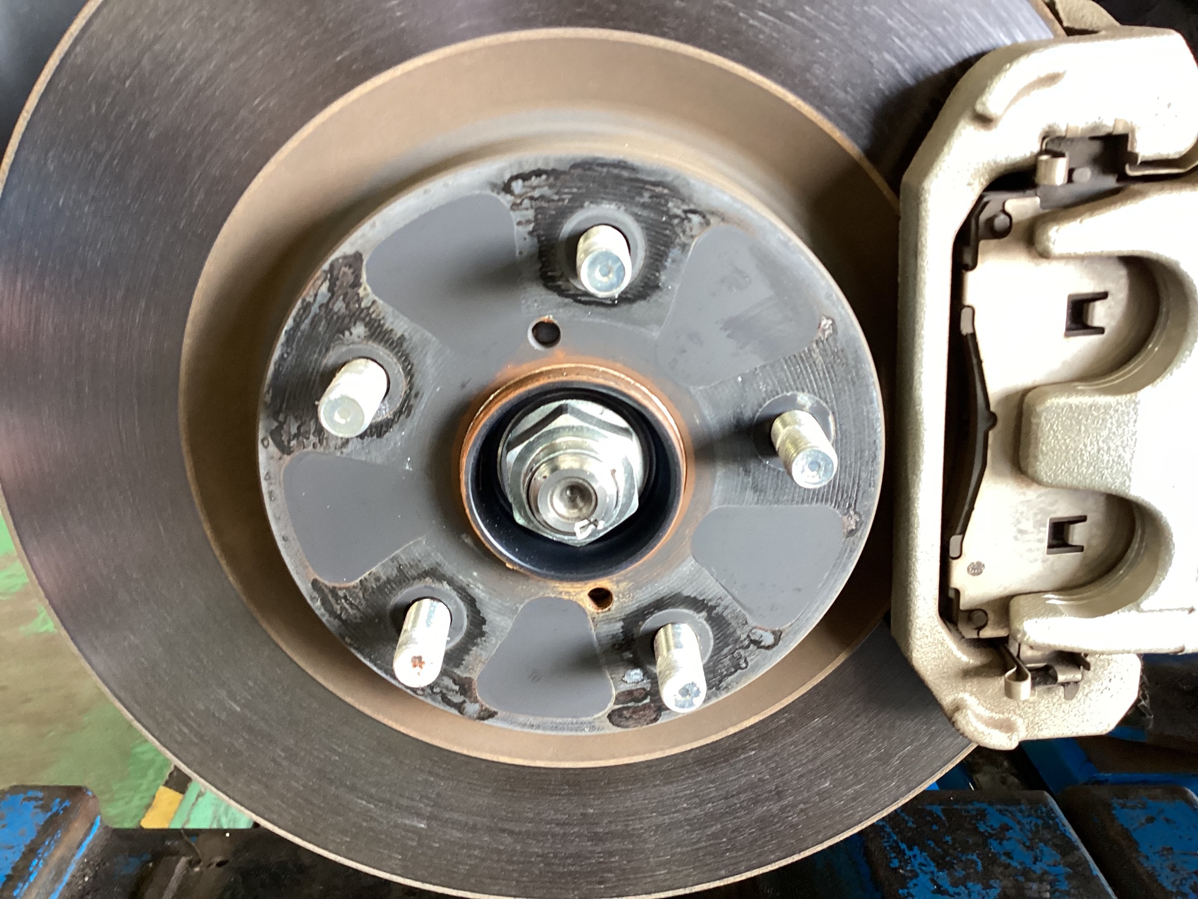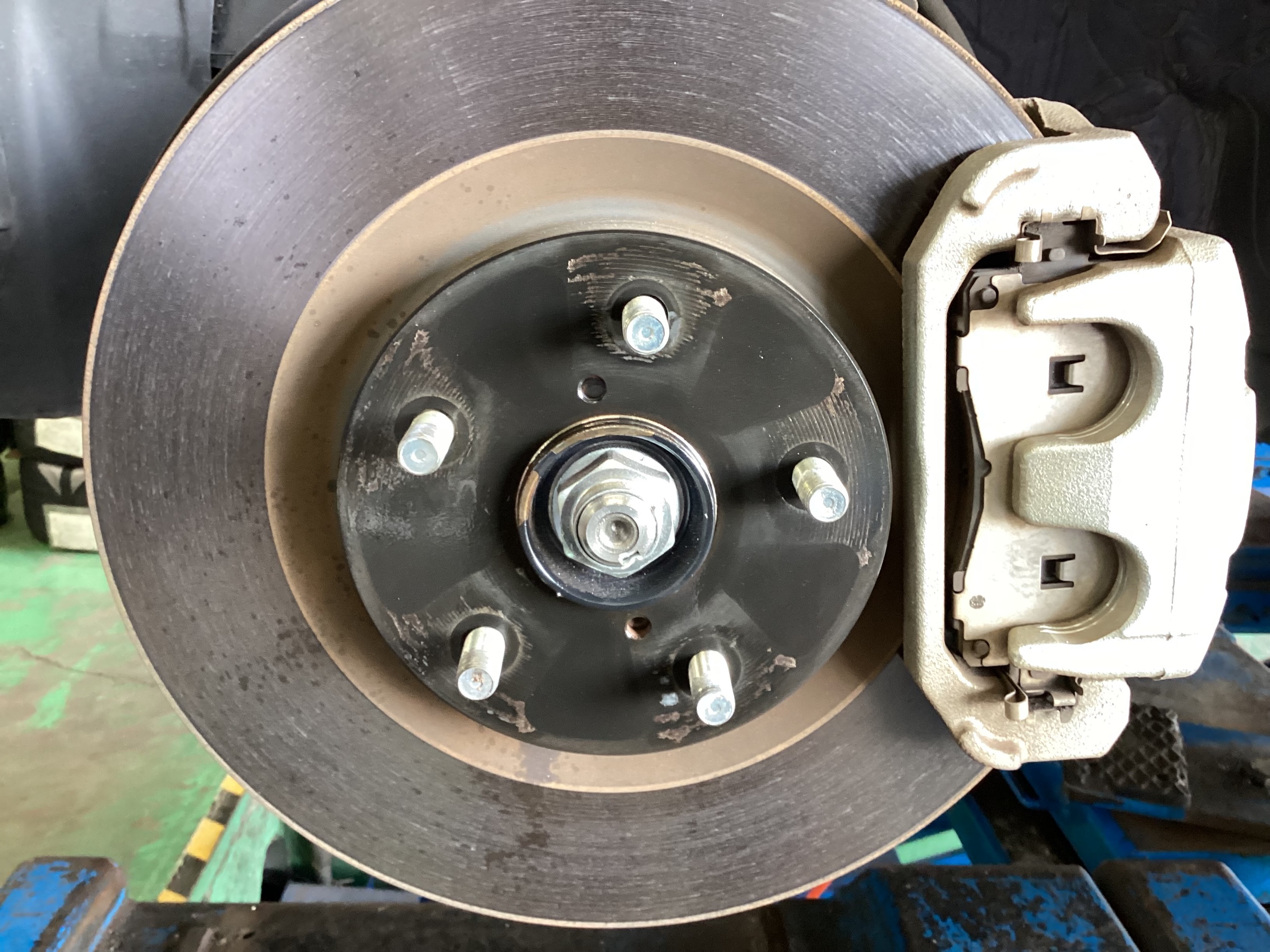 新車から乗っていてもこの部分には錆は発生します。そのまま放置しているとブレやガタの影響にもつながる事があります。