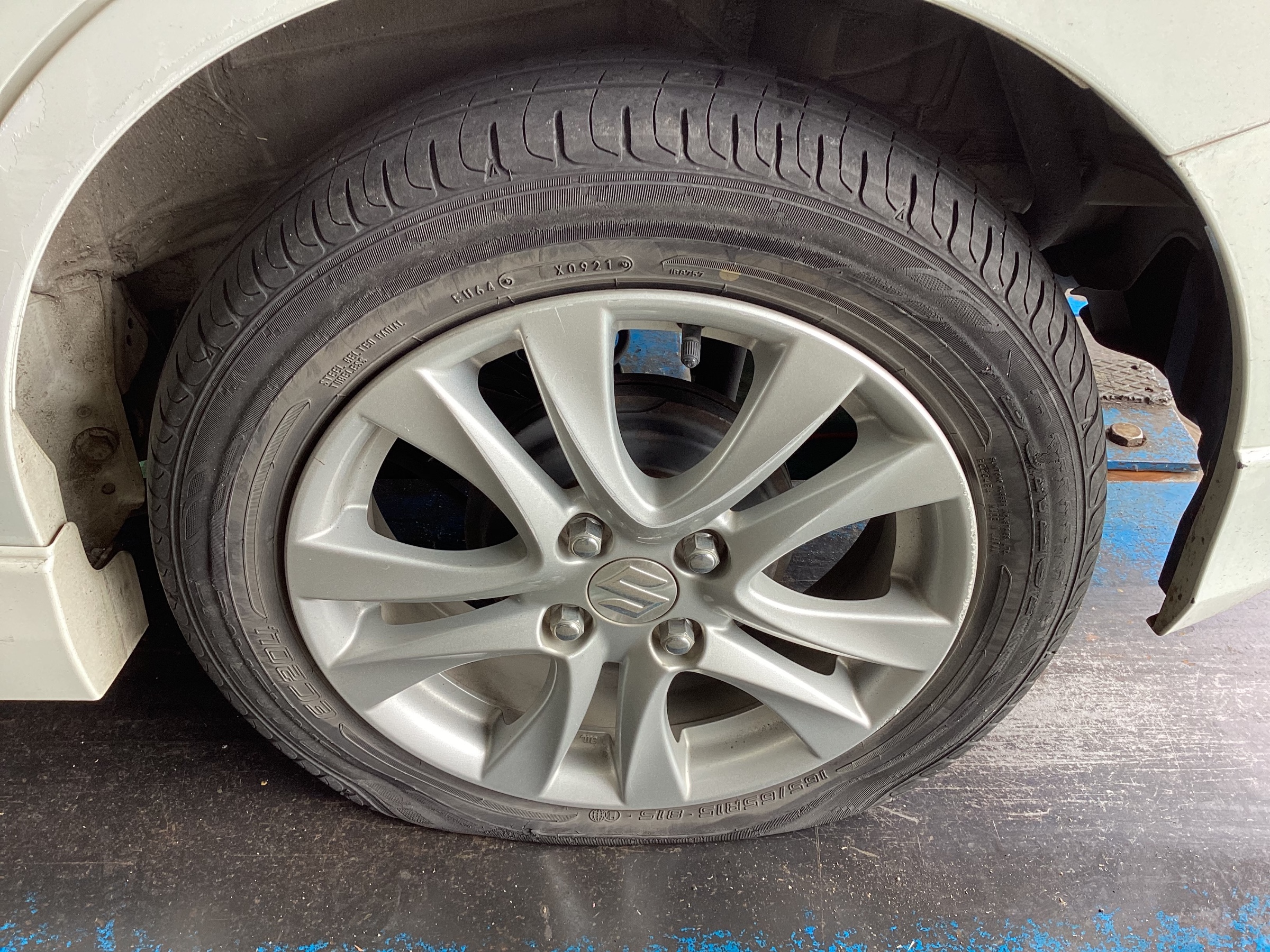 パンクしていたタイヤは横の方に線が入ってしまっていて、修理不可な状態でした。