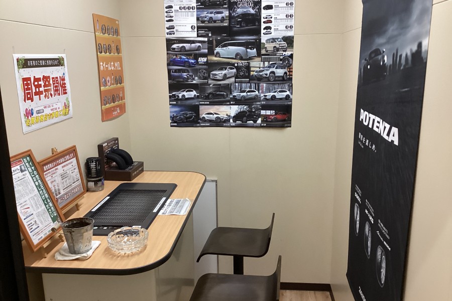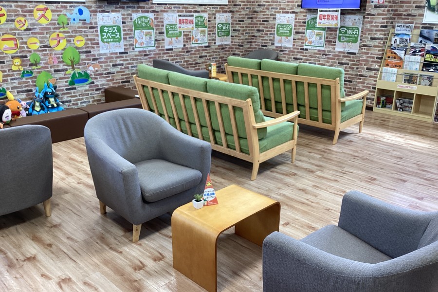 作業中は店内の広い待合スペースゆっくりお待ちください!!