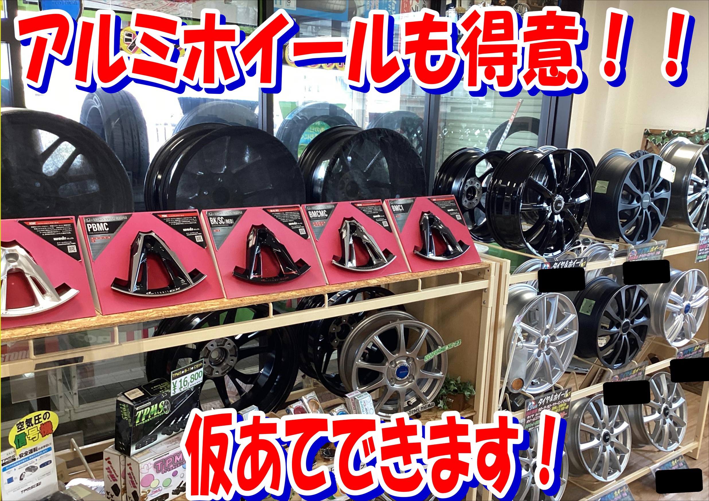 アルミホイールの展示もあります!仮あてOK☆