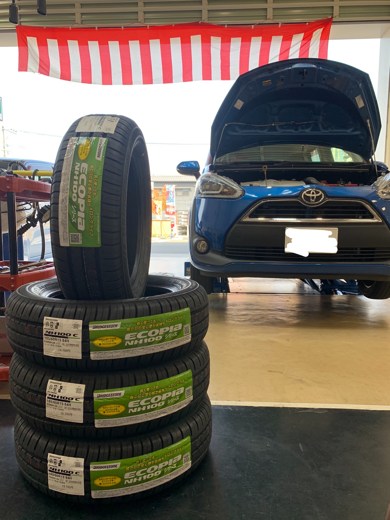 【トヨタ シエンタ】タイヤ交換 アライメント 185/60R15 NH100C