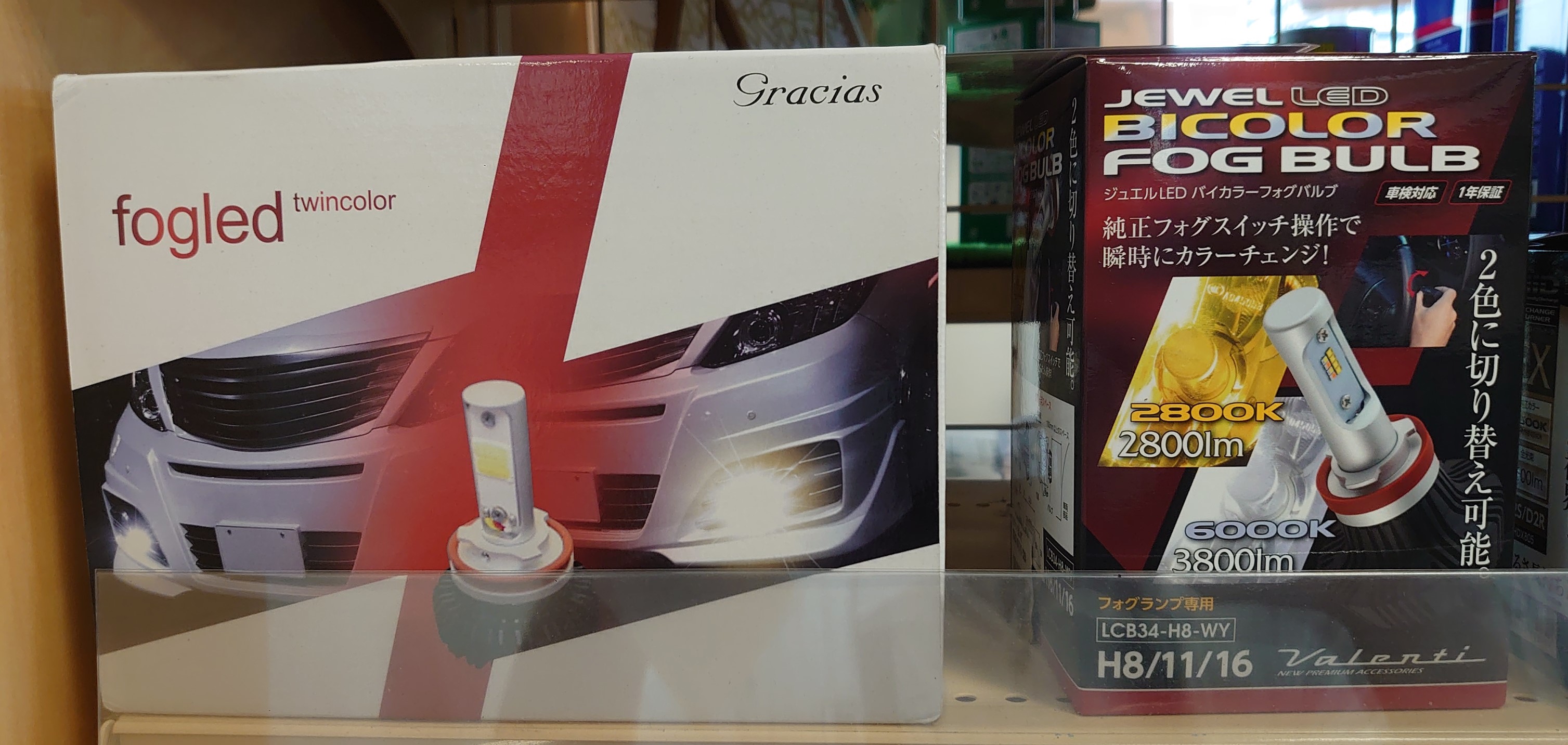 右がヴァレンティ BICOLOR LED FOG BULB