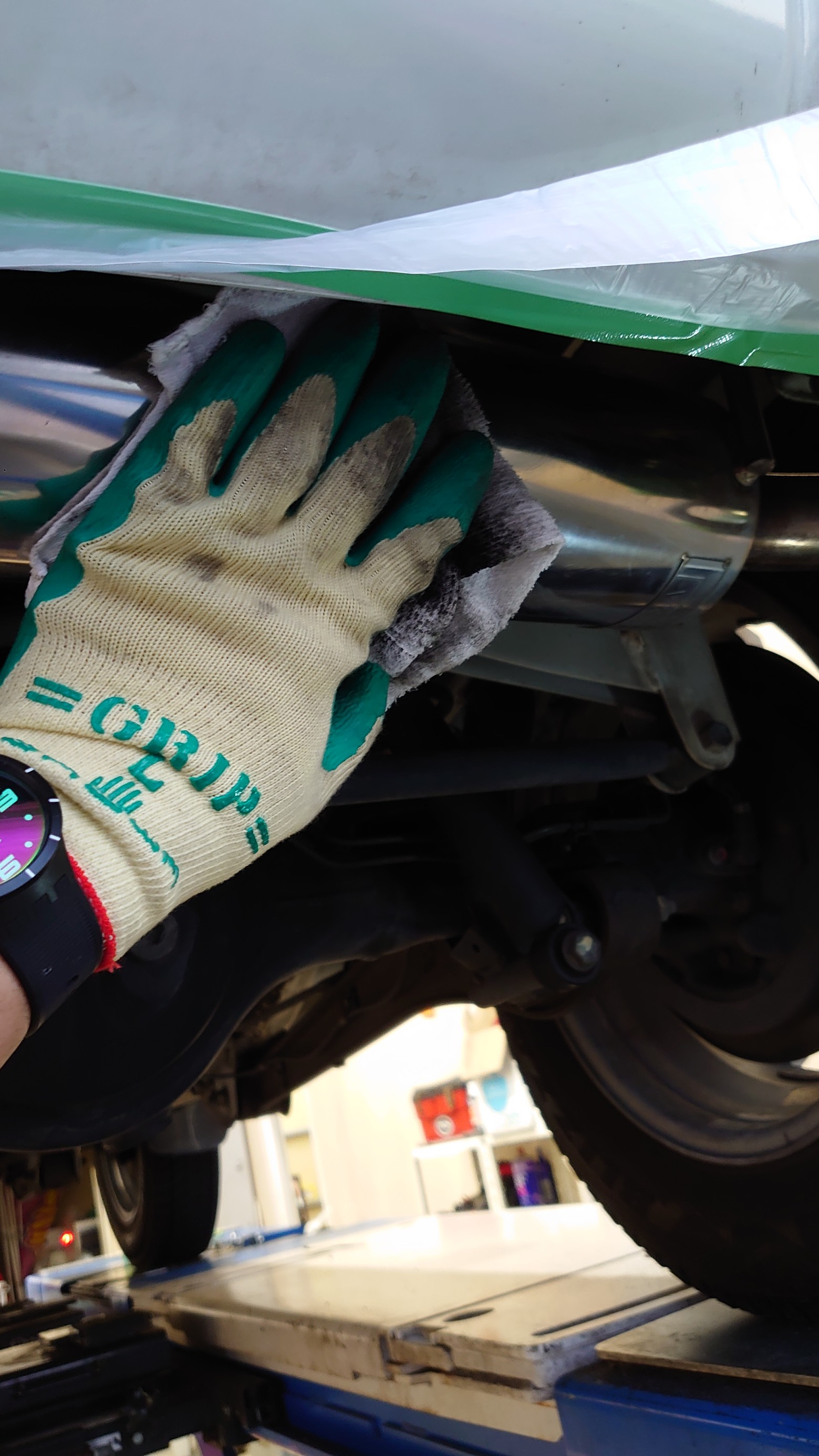 マフラーの防錆にはWURTH耐熱ラッカーを吹いていきます!