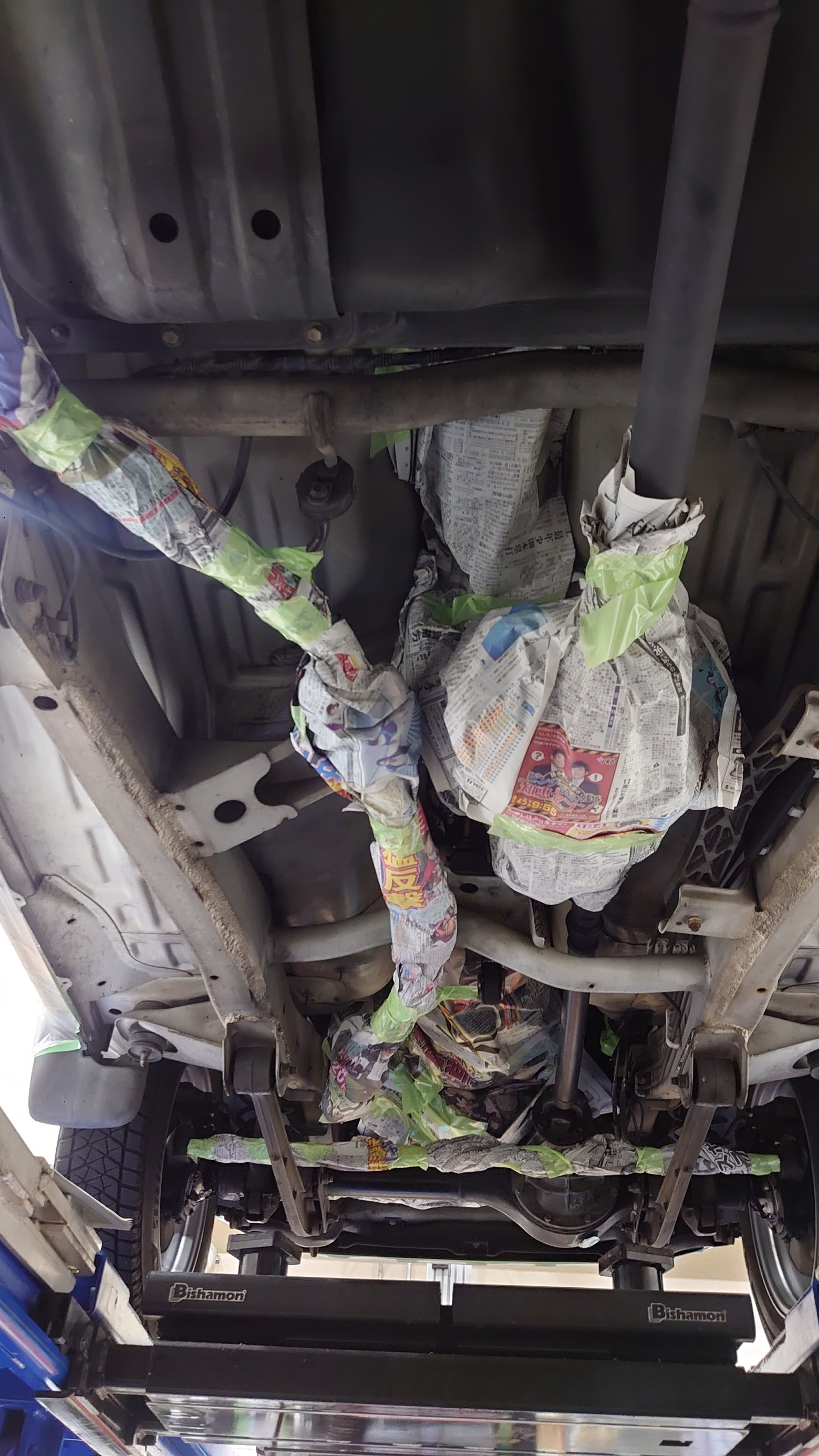 マフラー防錆、下廻りの錆転換が完了して乾いたのを確認してから