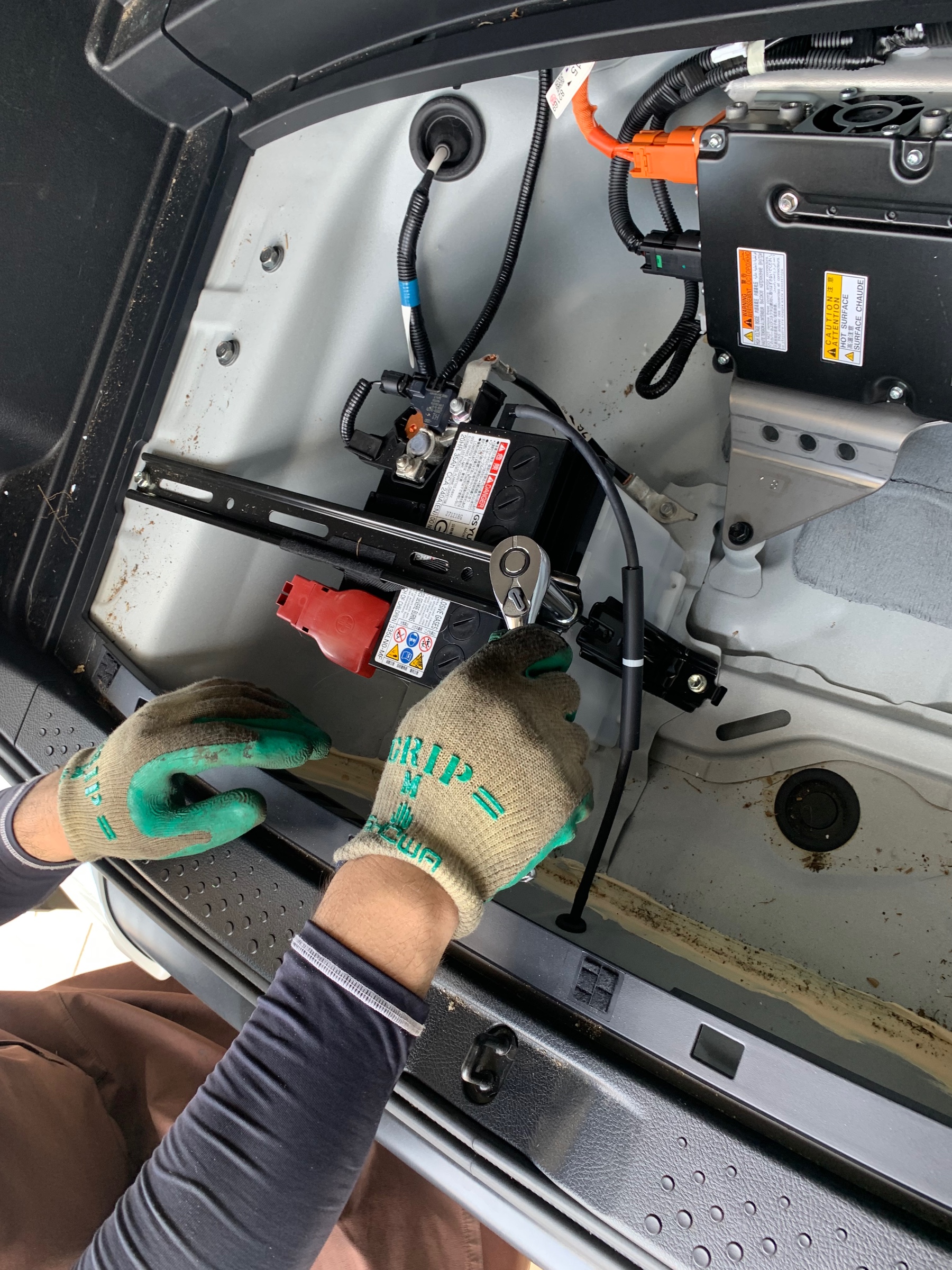 バッテリーはトランクの下にあります!