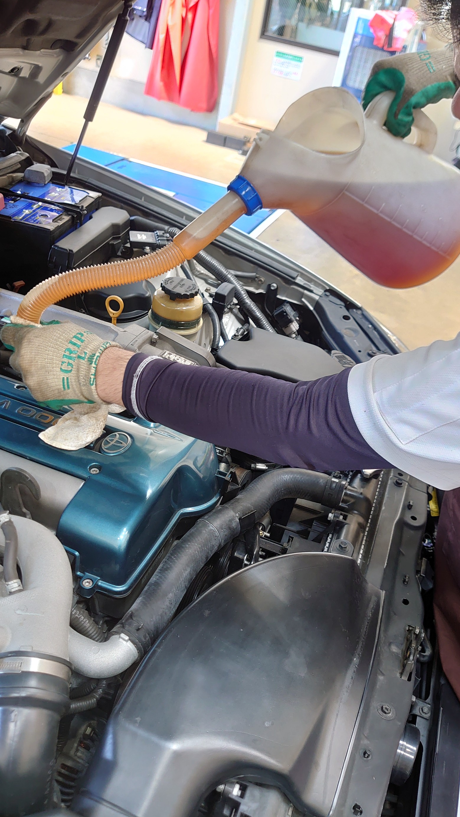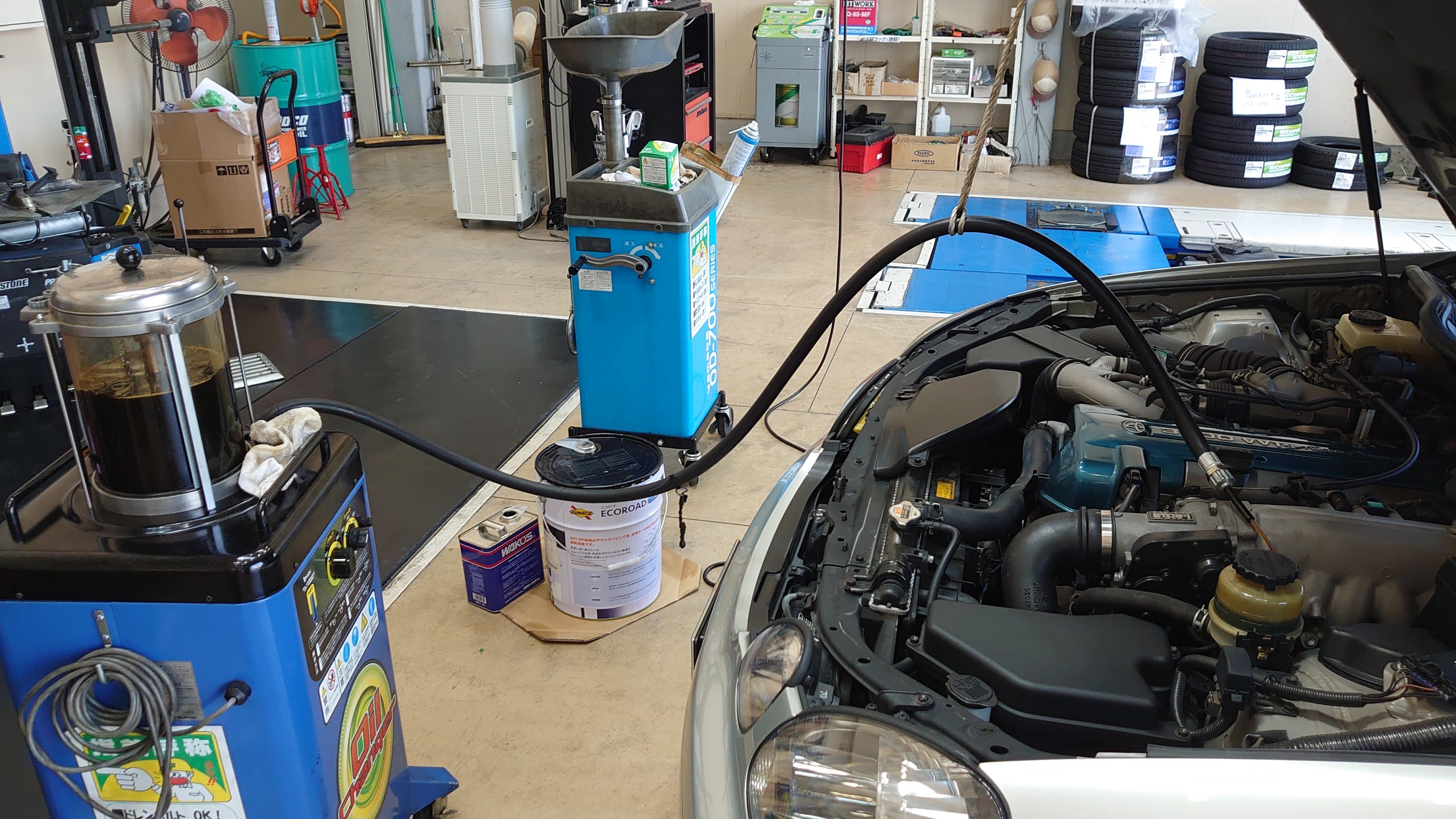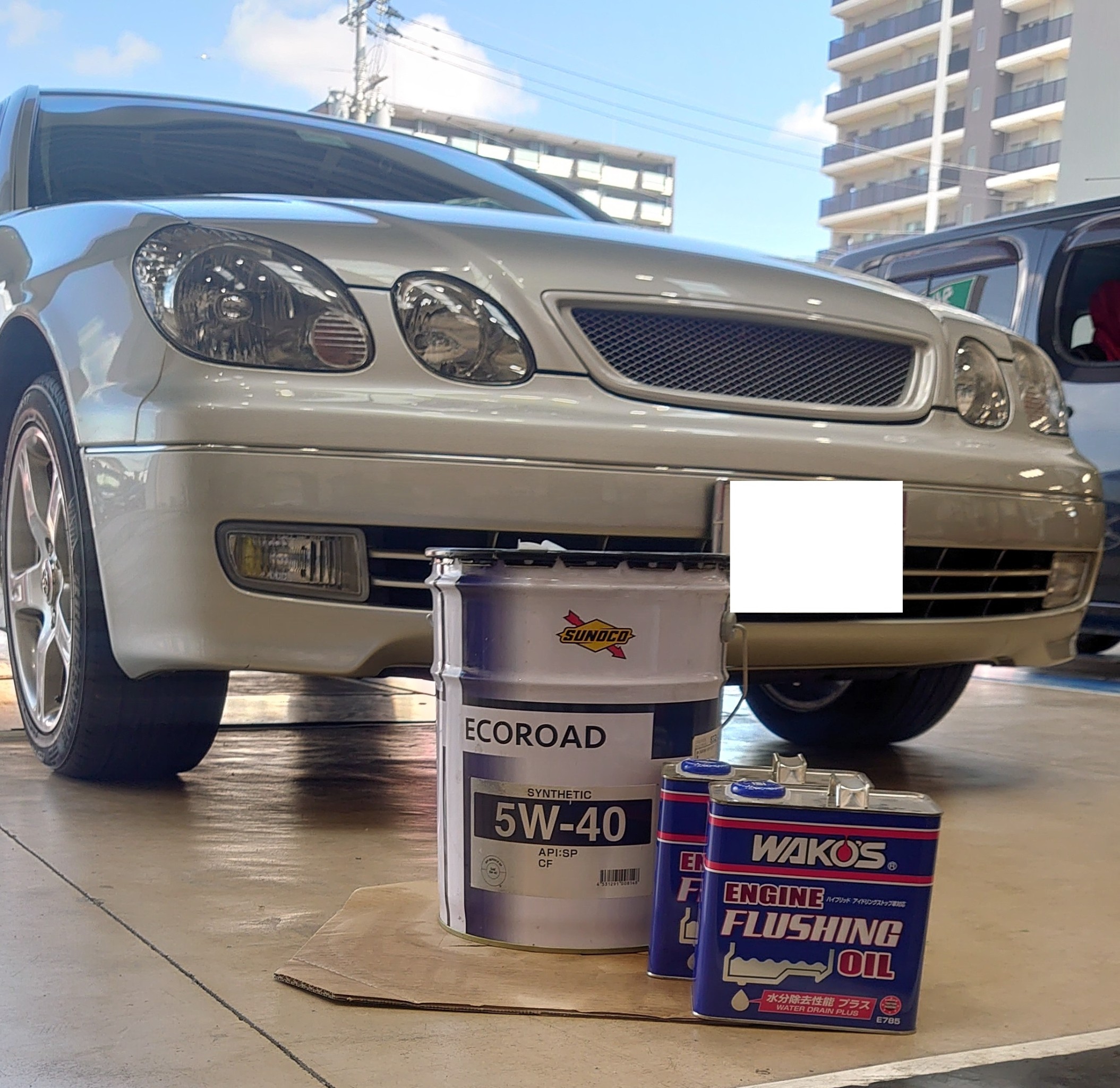 トヨタ アリストのエンジンオイル交換+フラッシング作業+エレメント交換