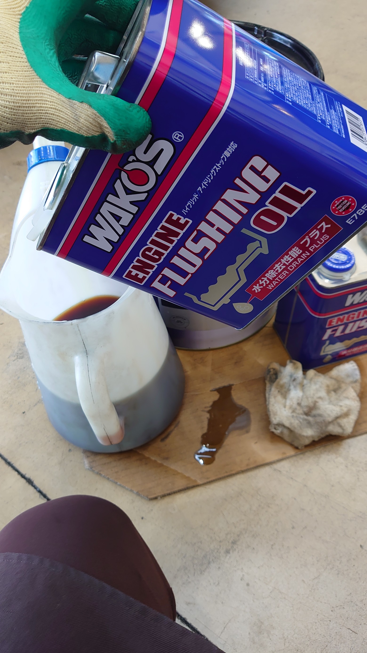 WAKO'S(ワコーズ)フラッシングオイルを入れていきます