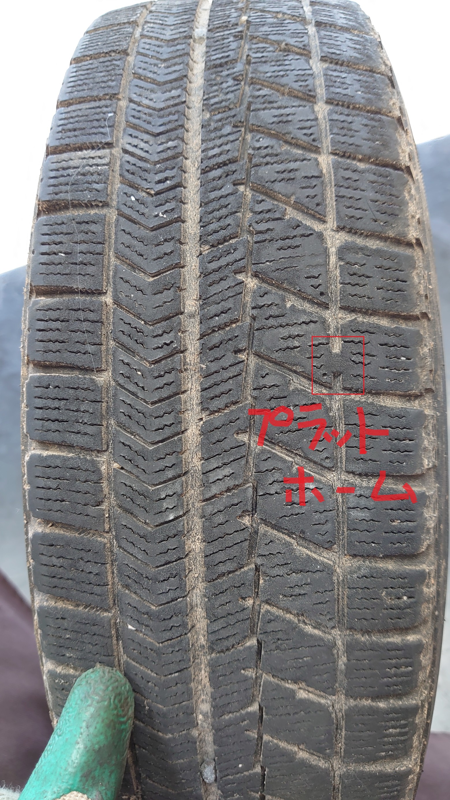 これが露出しているとスタッドレスタイヤとしての性能が落ちている状態です。