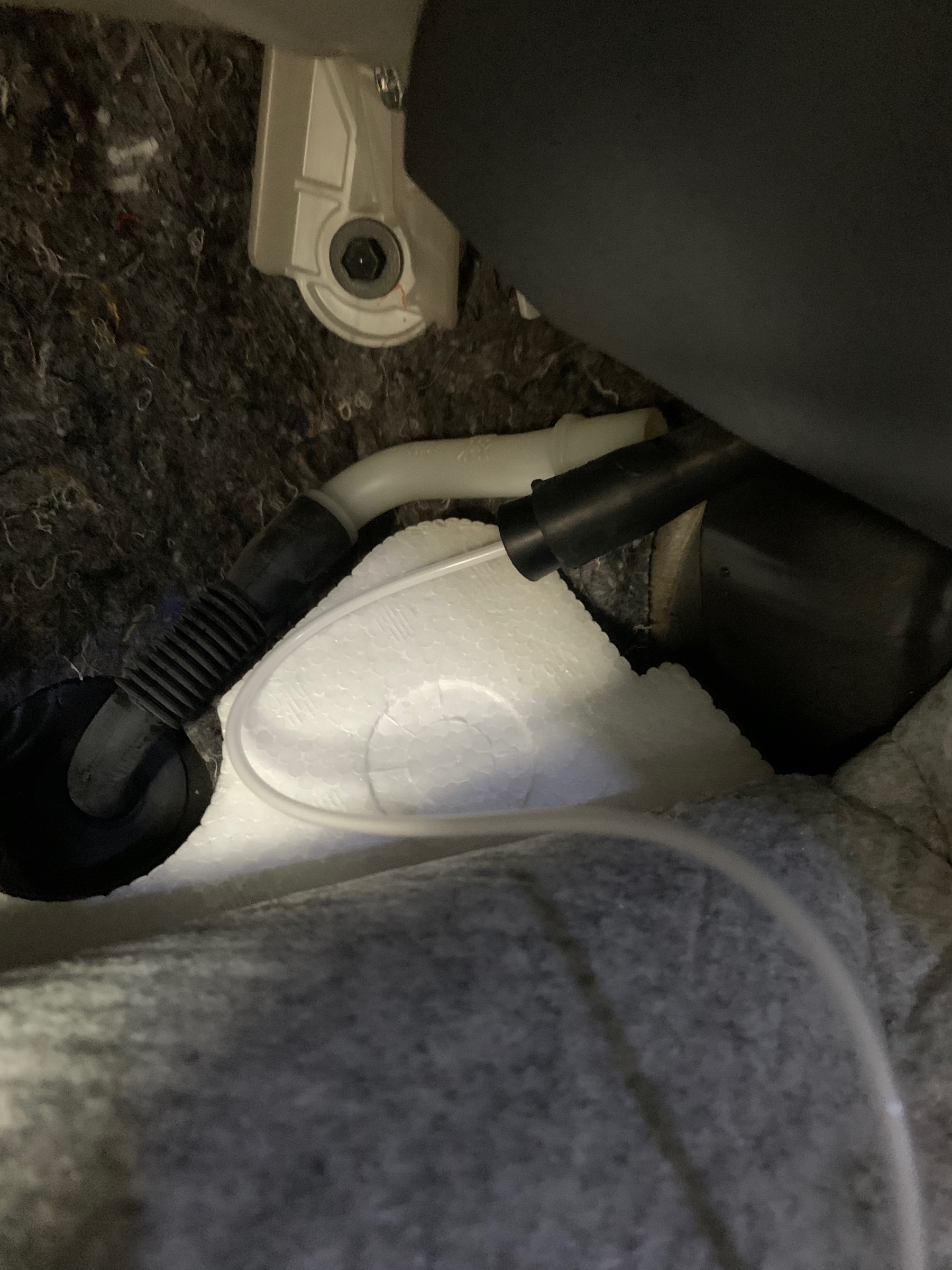30系プリウスのエアコン排水ホースは助手席側の足元の奥の方に