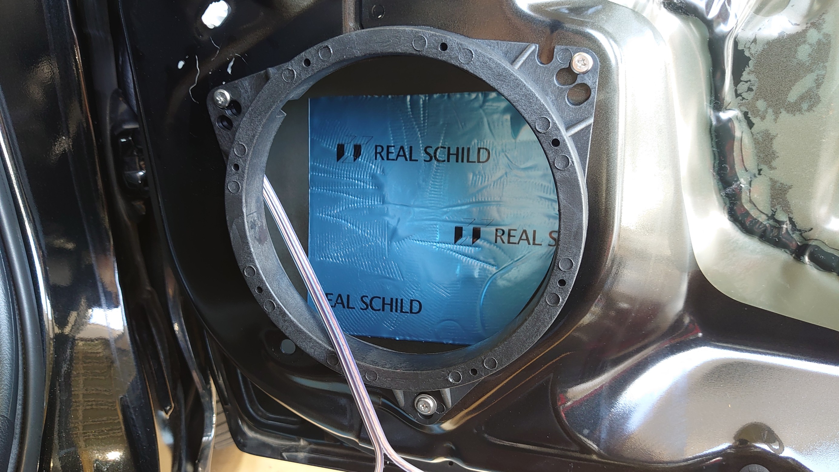 イースコーポレーションのバッフルを固定、スピーカーの後ろにレアルシルトを貼っています