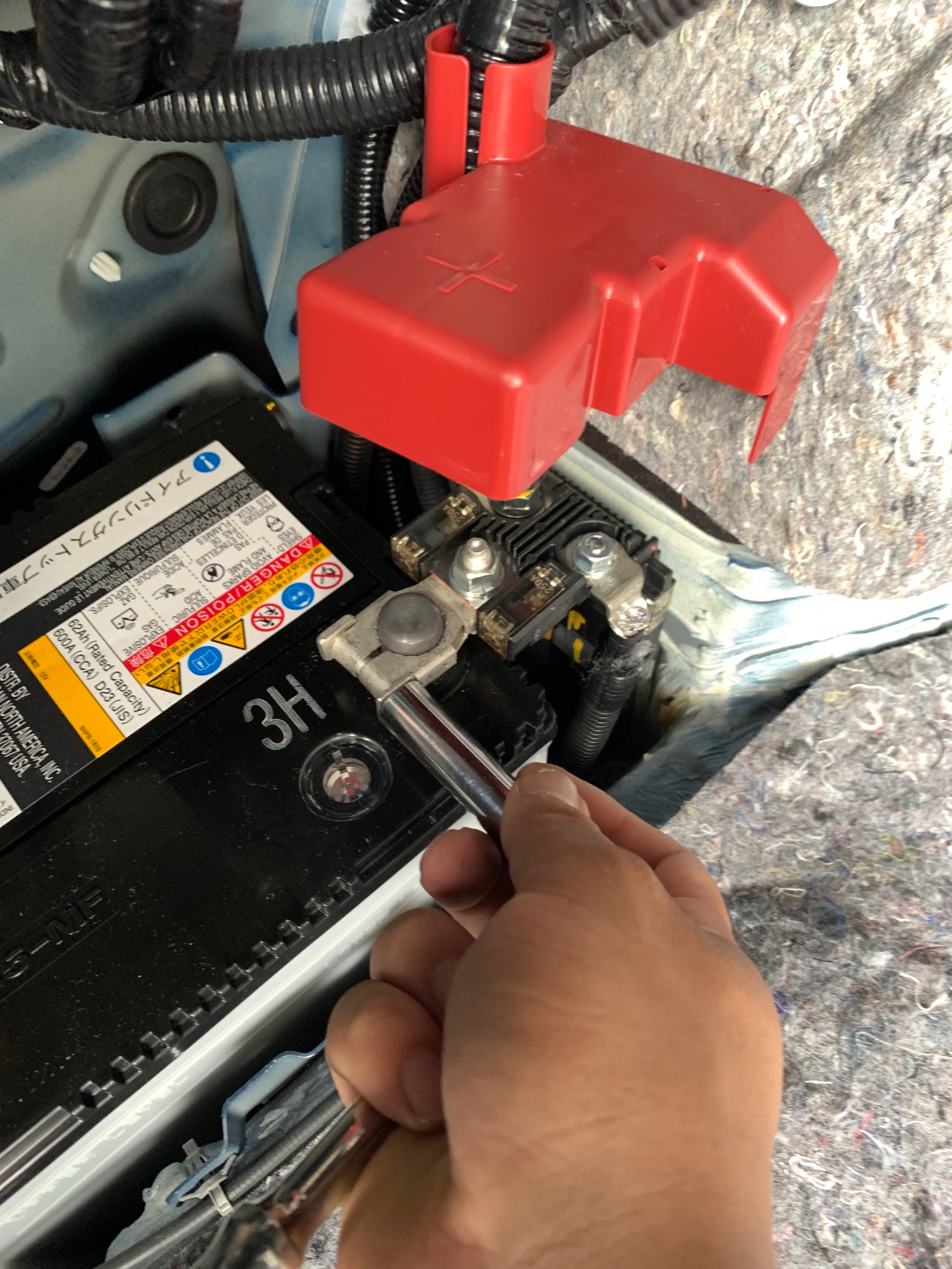 次はバッテリーの端子を外していきます