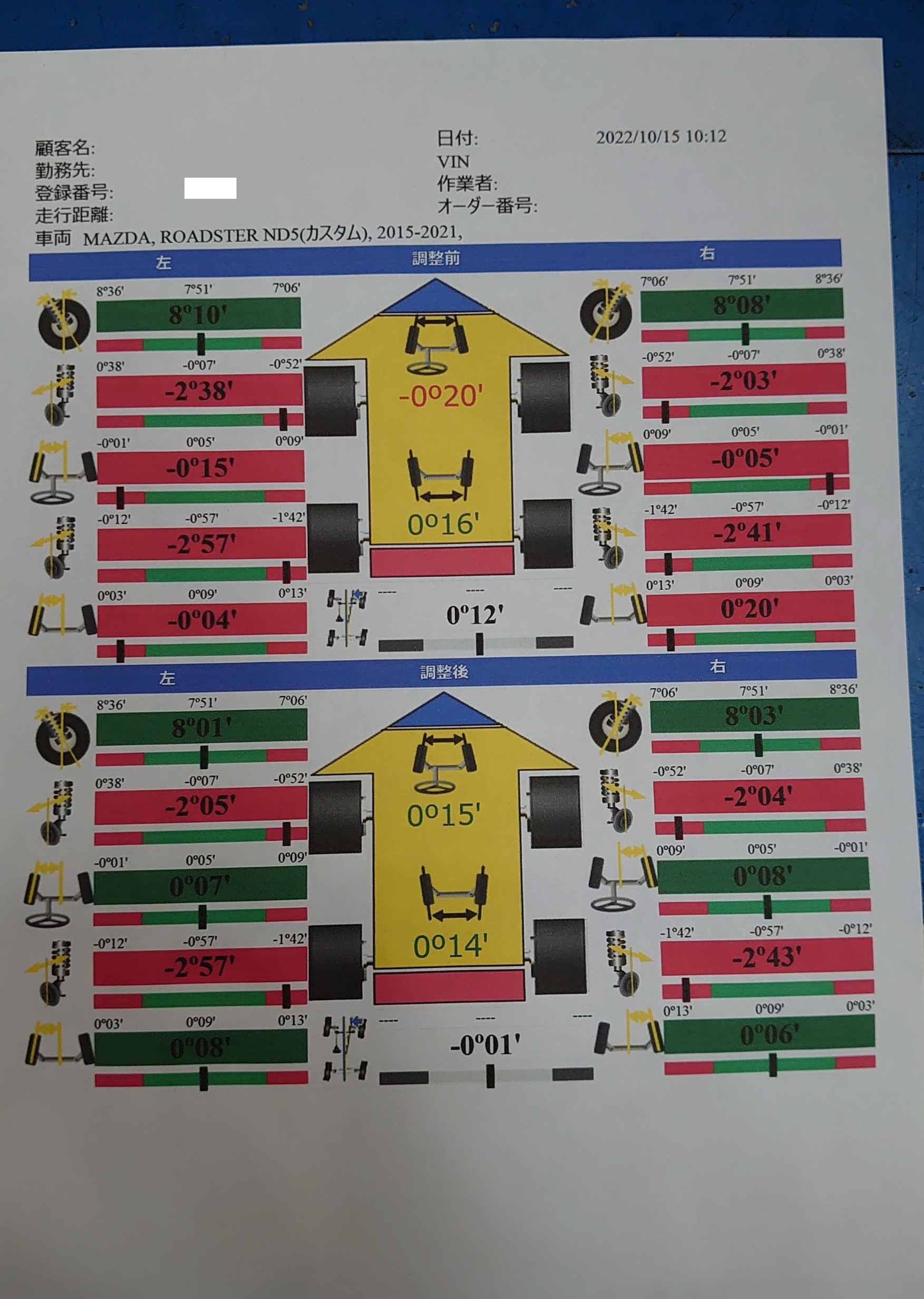 マツダ ロードスターRFのアライメント調整をさせていただきました(^^)/