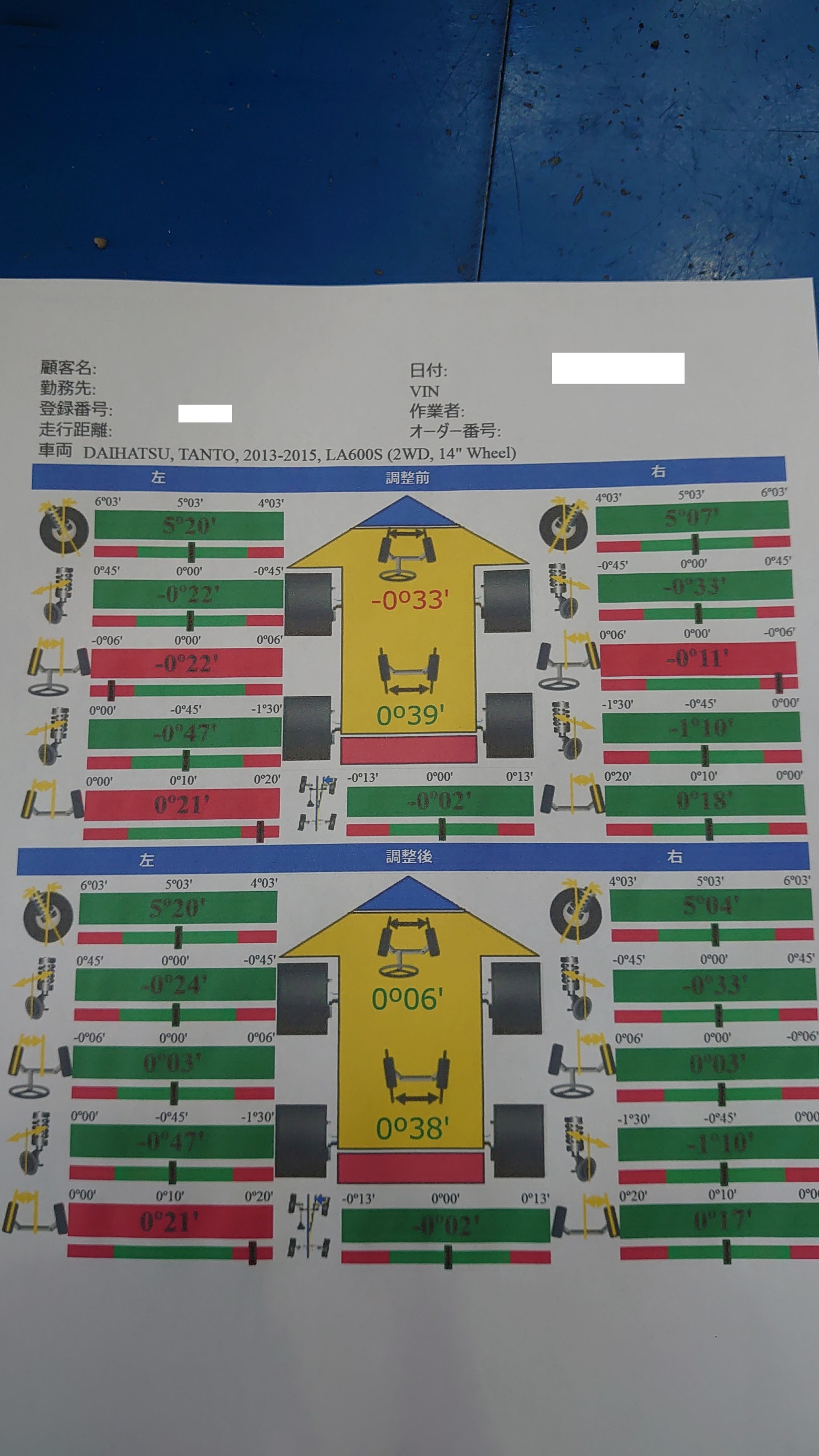 フロントトーを調整して作業終了です
