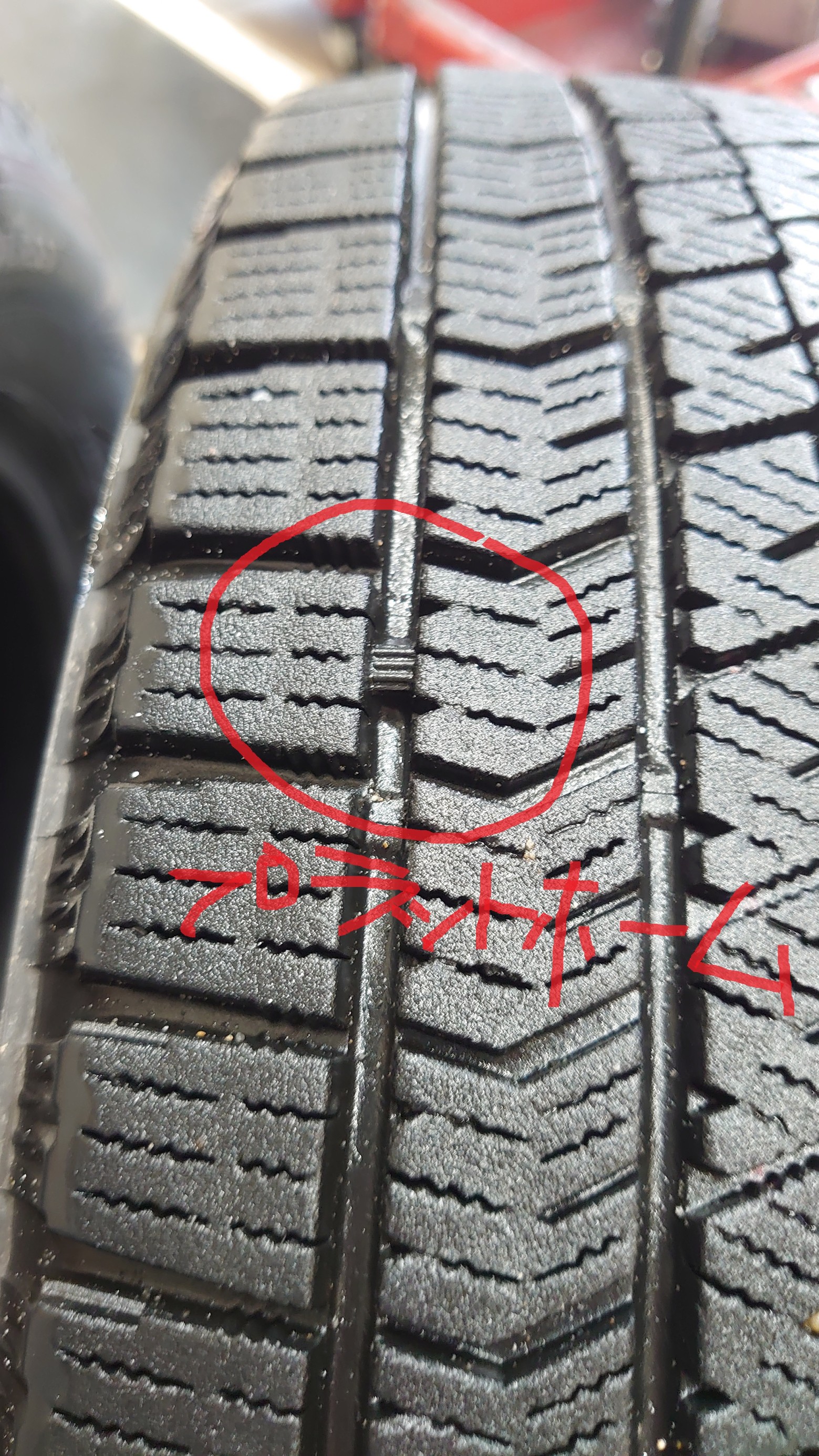前のタイヤはタイヤの角が切れてパンクされてました・・・(;^_^A