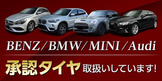 メルセデス・ベンツ/BMW(ビーエムダブリュ)/MINI(ミニ)/AUDI(アウディ)承認タイヤ取扱いしています!
