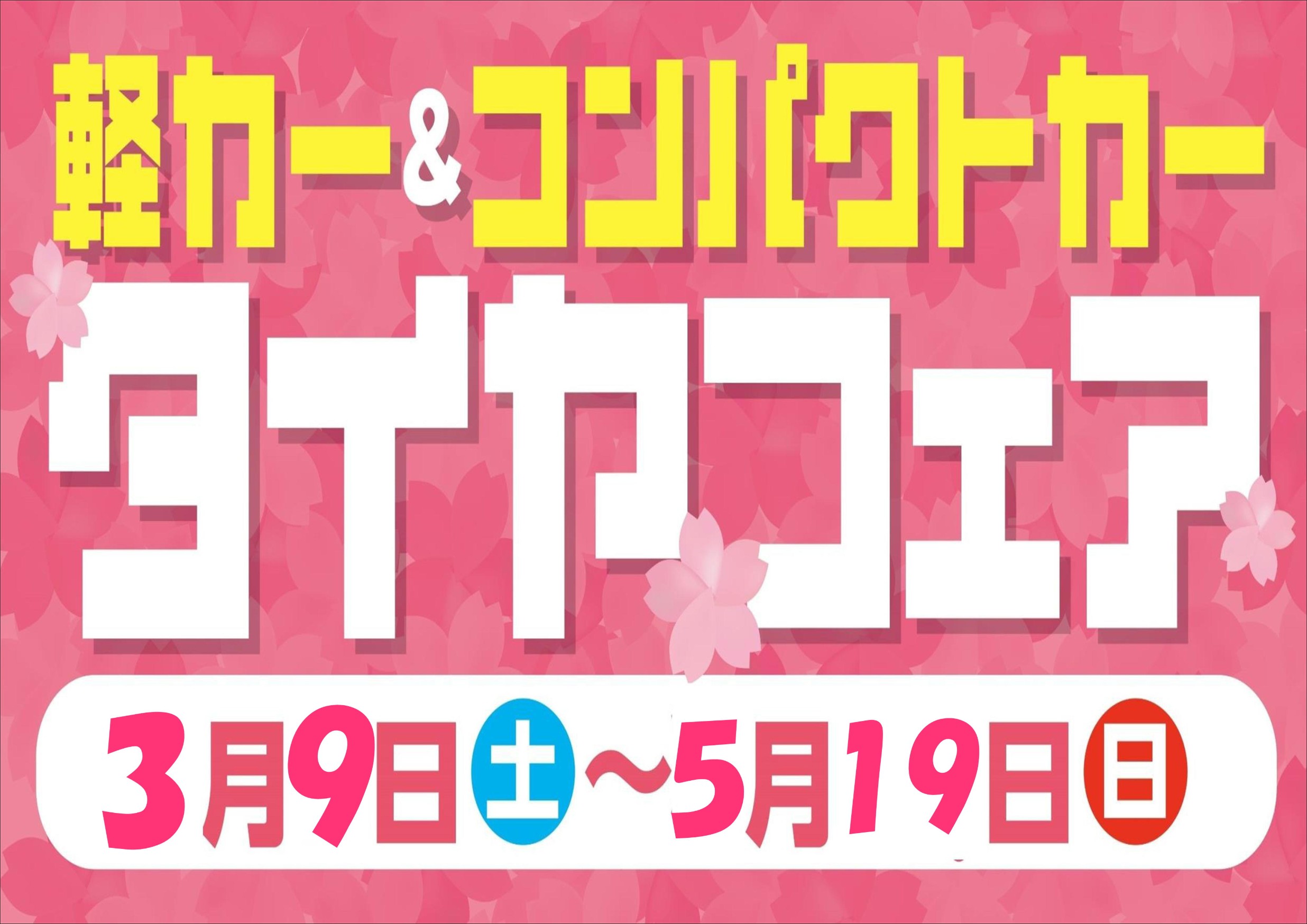 3/9(土)~5/19(日)まで軽カー&コンパクトカータイヤフェア開催中です(^^)/