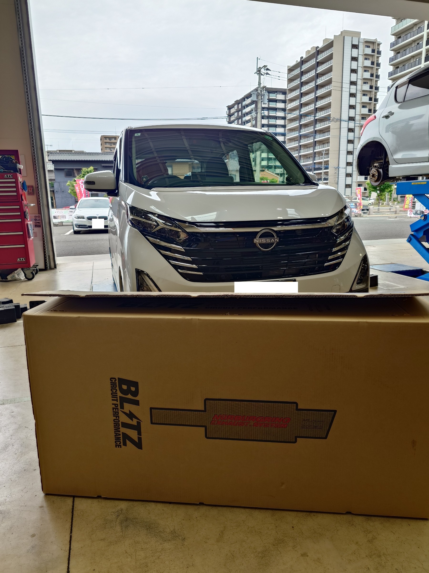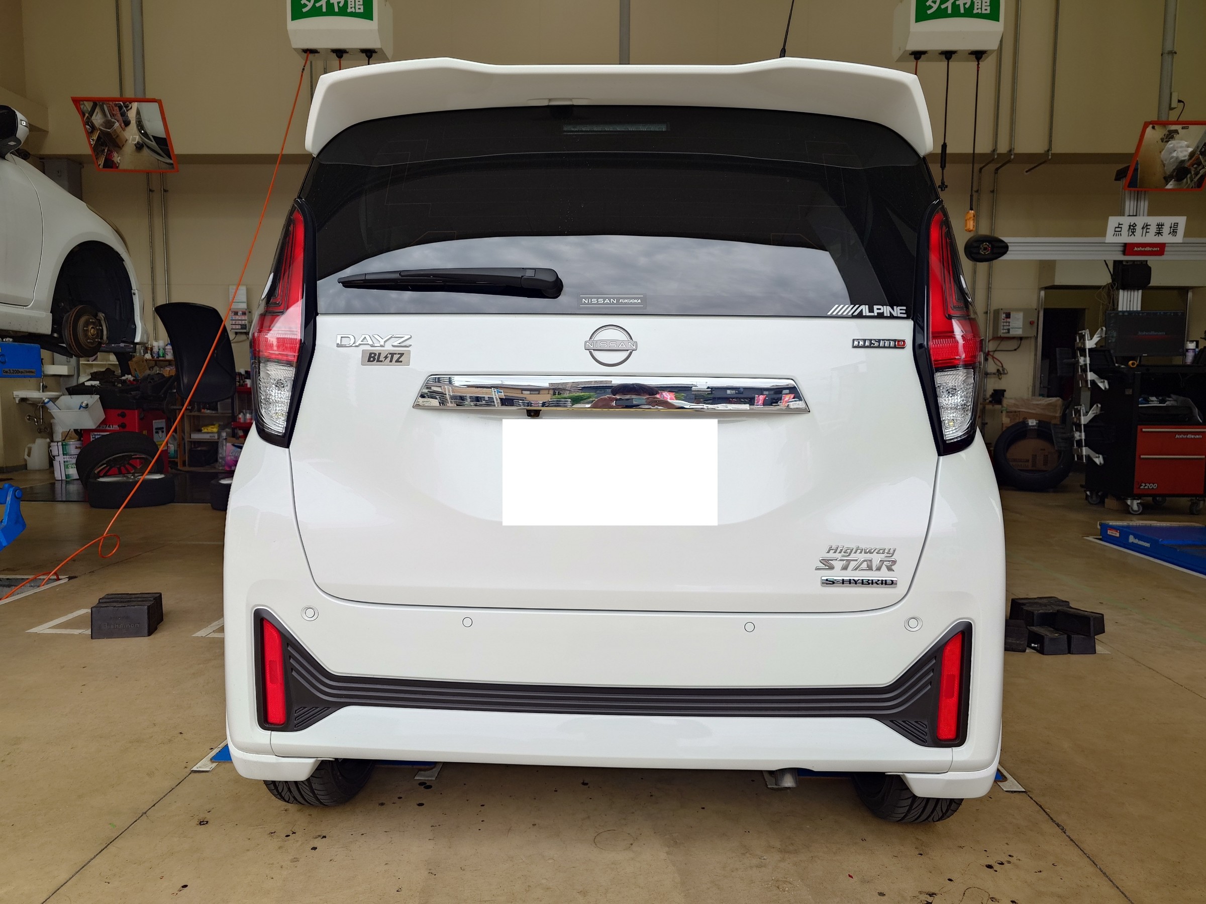 ニッサン デイズ ハイウェイスター(B45W) マフラー取付+アライメント調整 BLITZ(ブリッツ) ニュルスペックカスタムエディションVSR 6/8(土)~6/31(日)まで車高調大商談会を開催しております(^^)/