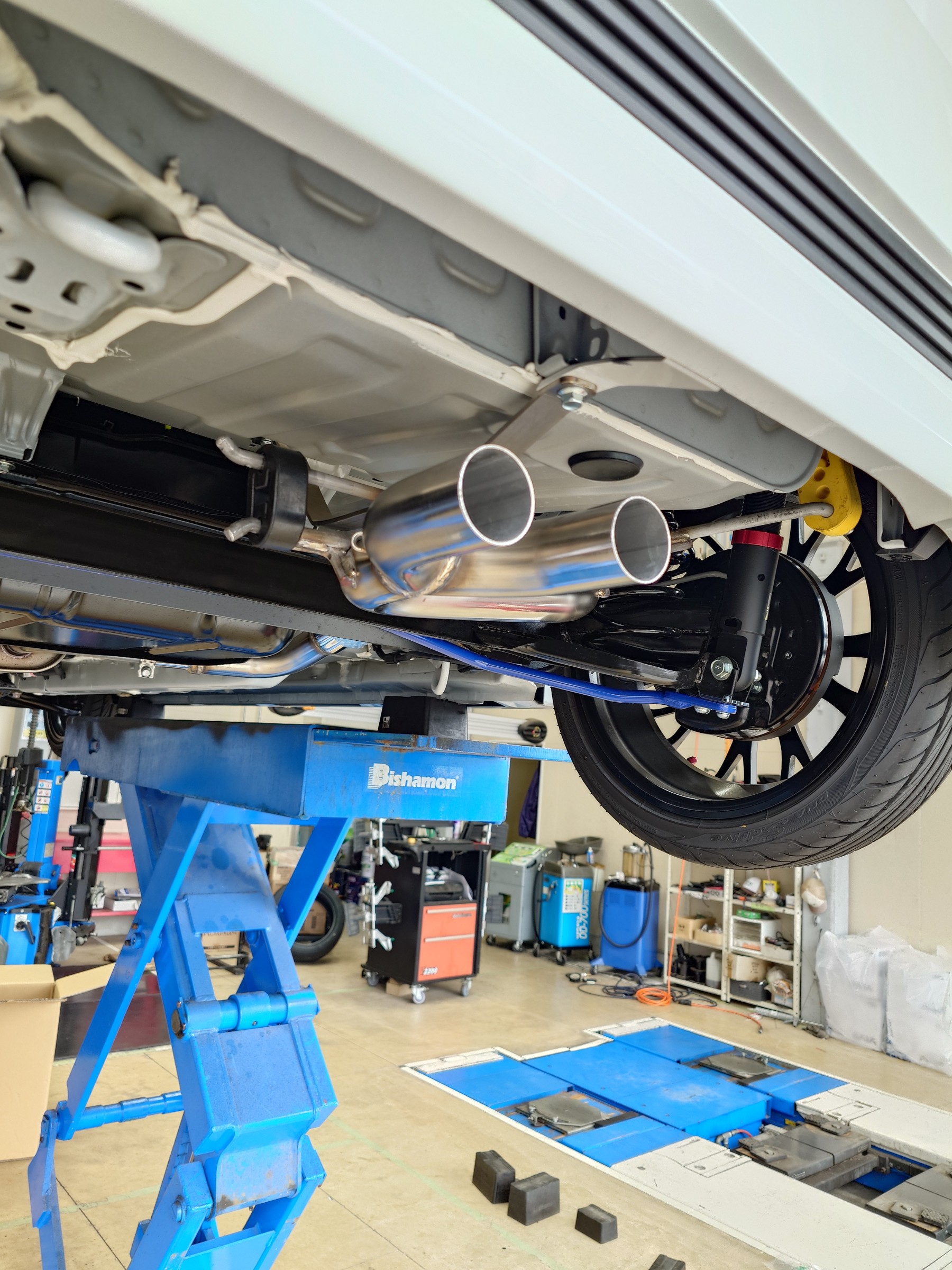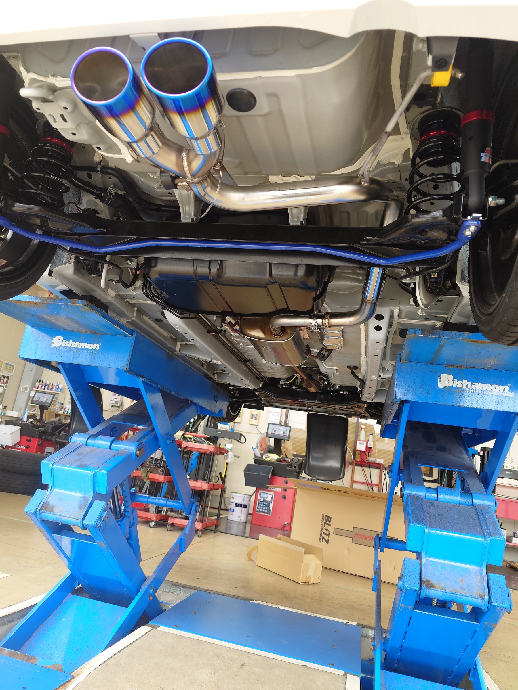 行橋市内でBLITZ(ブリッツ)製品 マフラーの購入 取付 アライメント調整ははタイヤ館行橋店におまかせください('◇')ゞ