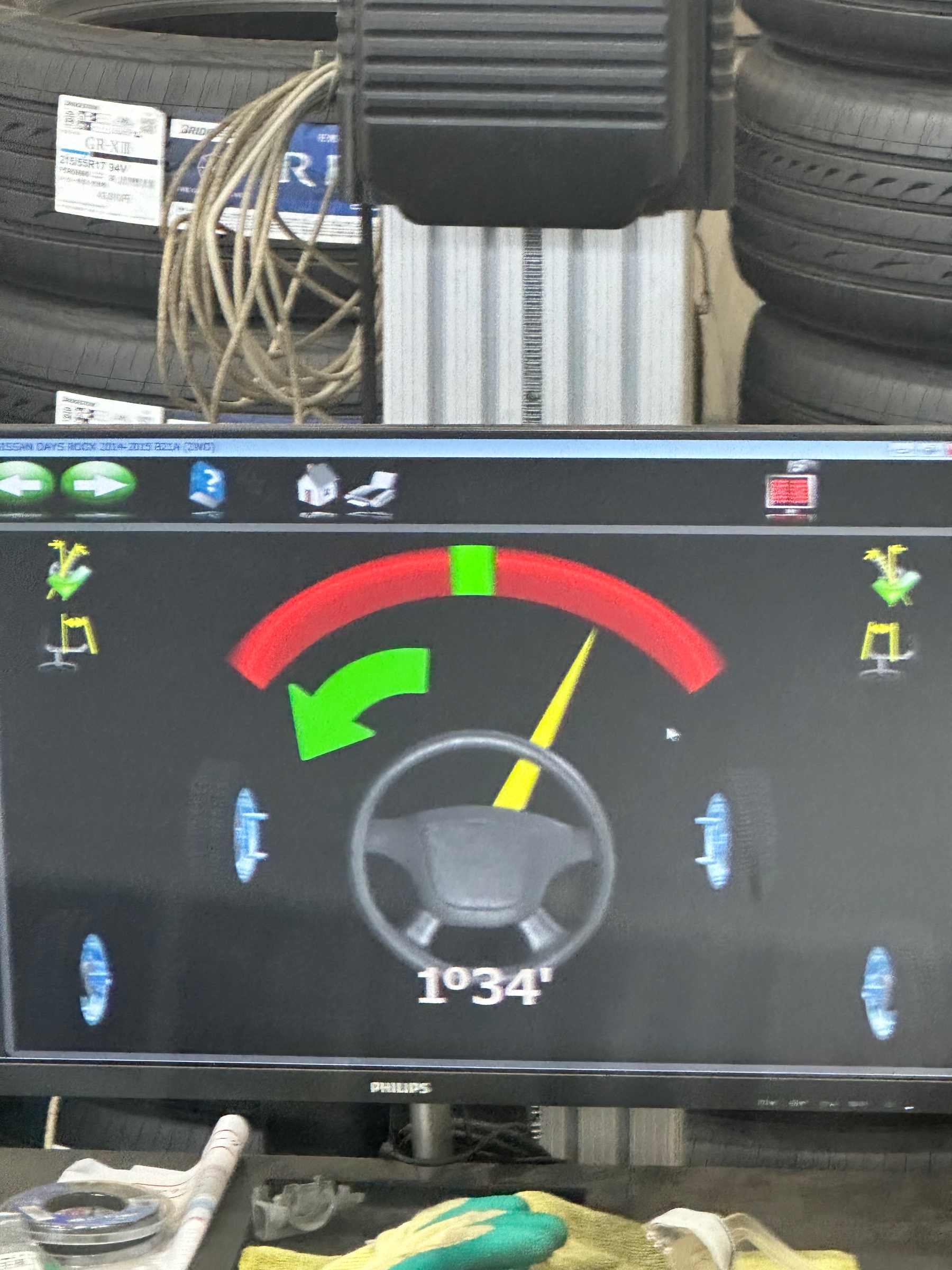 キャスター測定の時にハンドルセンターを確認します