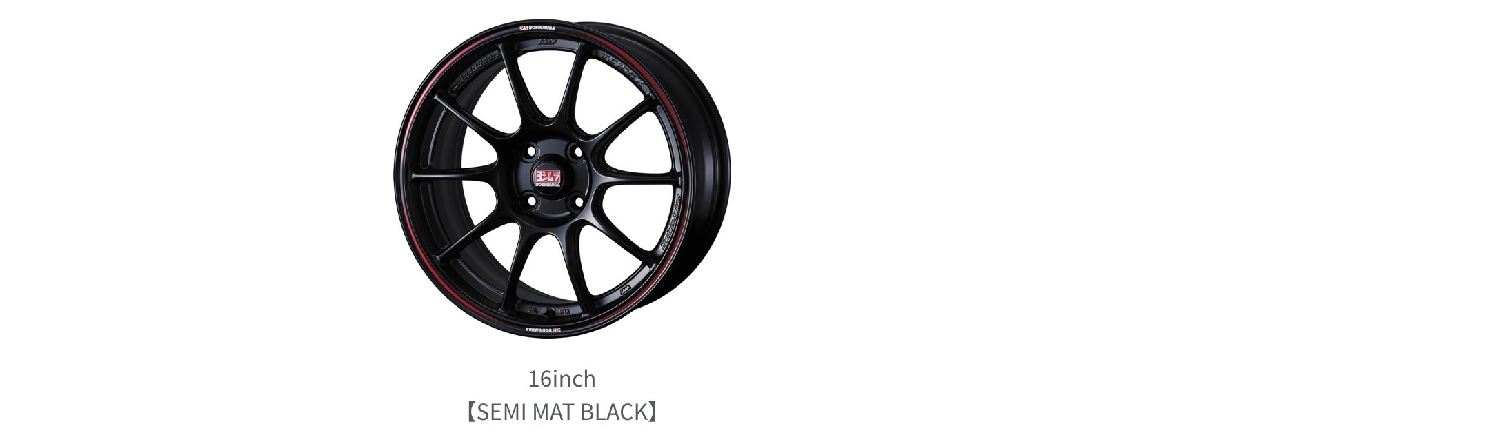 リムフランジに「ヨシムラYOSHIMURA」のロゴとレッドラインを施し、リアルレーシング仕様の仕上がりに