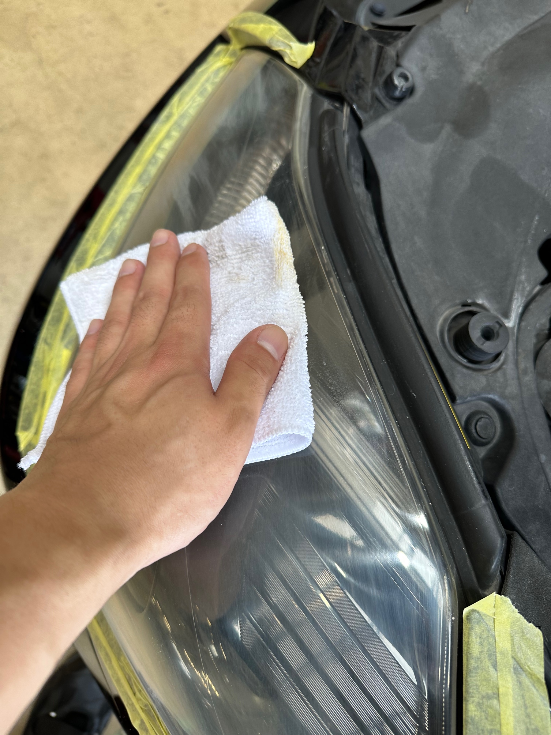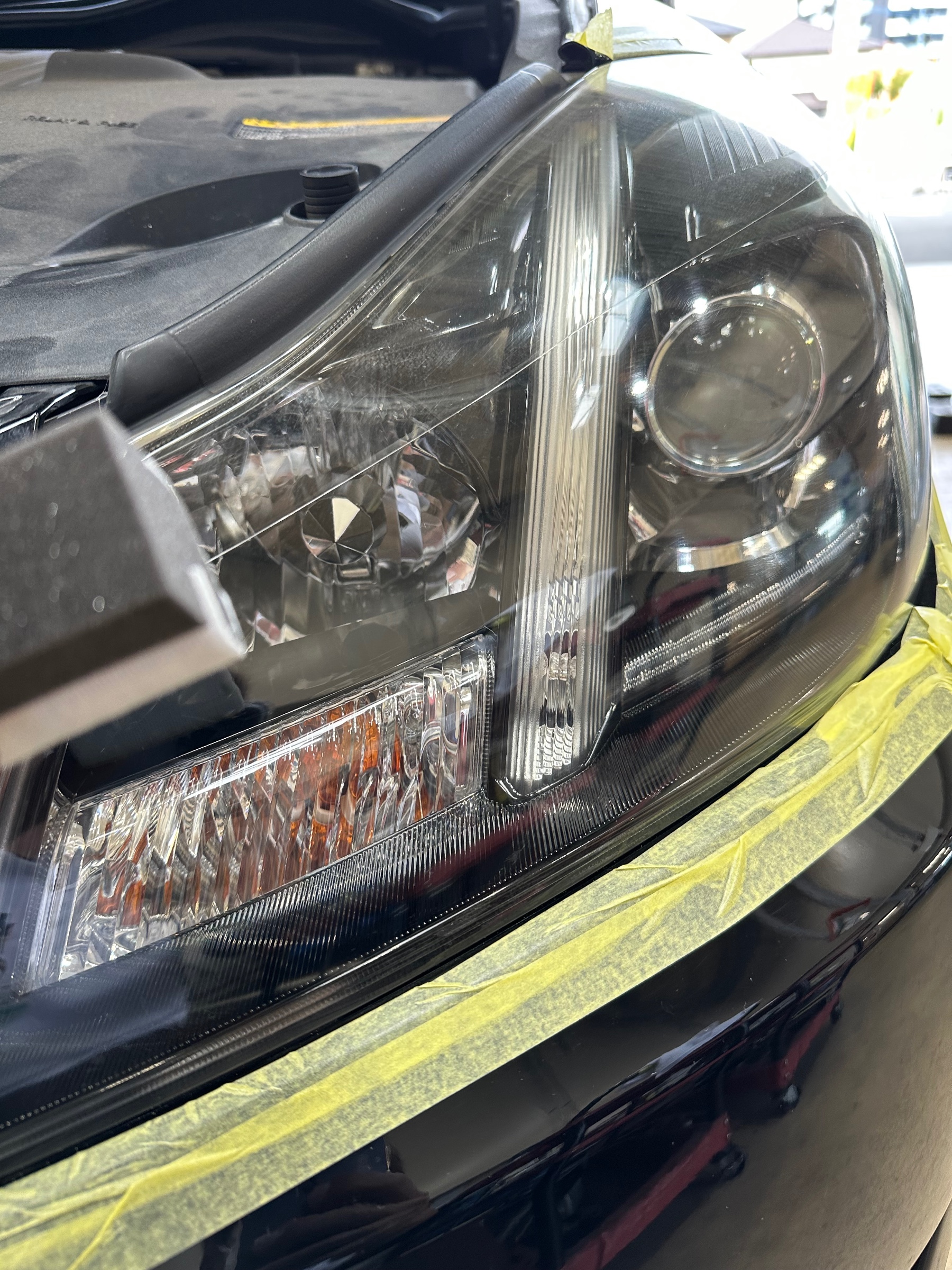 まずは傷や汚さないようにヘッドライトの周りをマスキングテープを貼っていきます。