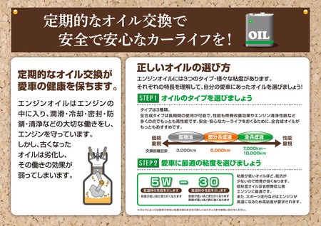 車に合ったオイルを使うことでお車の性能・燃費の維持ができますし、