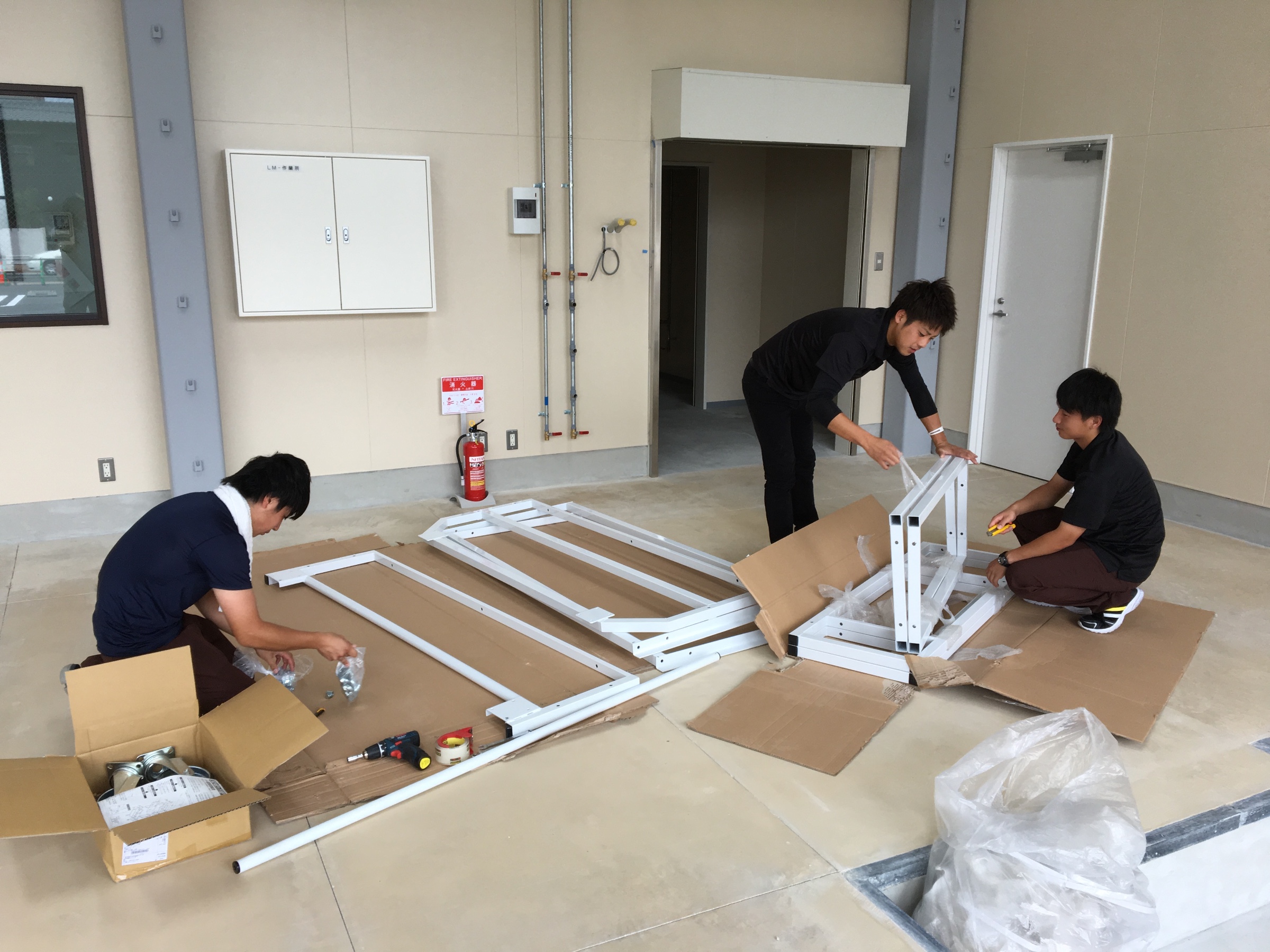 今日から皆んなで! ポスト 2017年9月5日 どうもっ もうすぐオープン!タイヤ館行橋 山田です。 本日、タイヤ館行橋店の鍵をついに頂きました‼️ 工事の方は完了です(^o^)/ スタッフも今日から行橋店に合流していよいよ機材を組立てて行きます! 当店自慢の男スタッフ3人衆! もくもくと組立てております。 車の整備もするので工具使いはお手の物 担当:山田